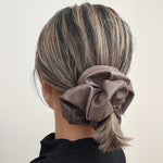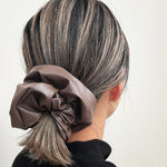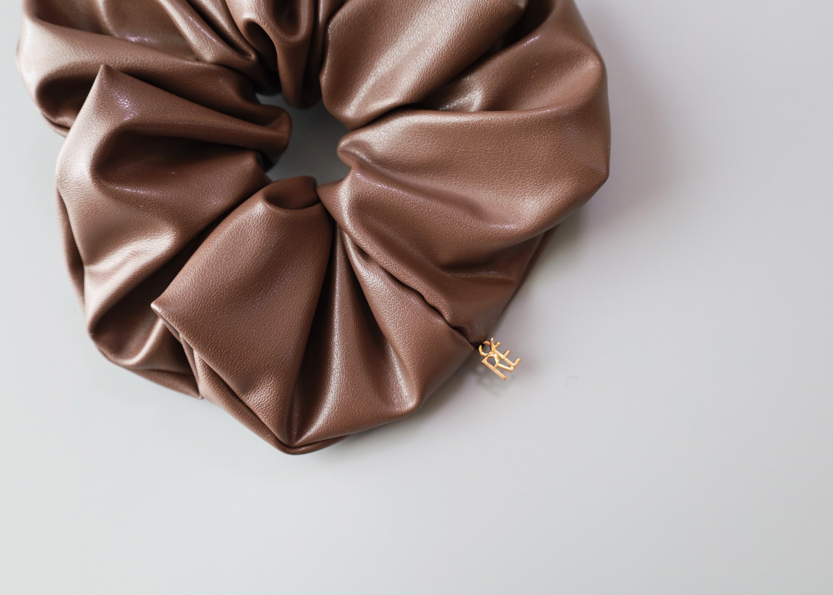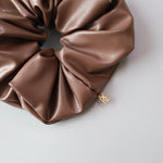 ボリューム感たっぷりなエコレザーのシュシュ。