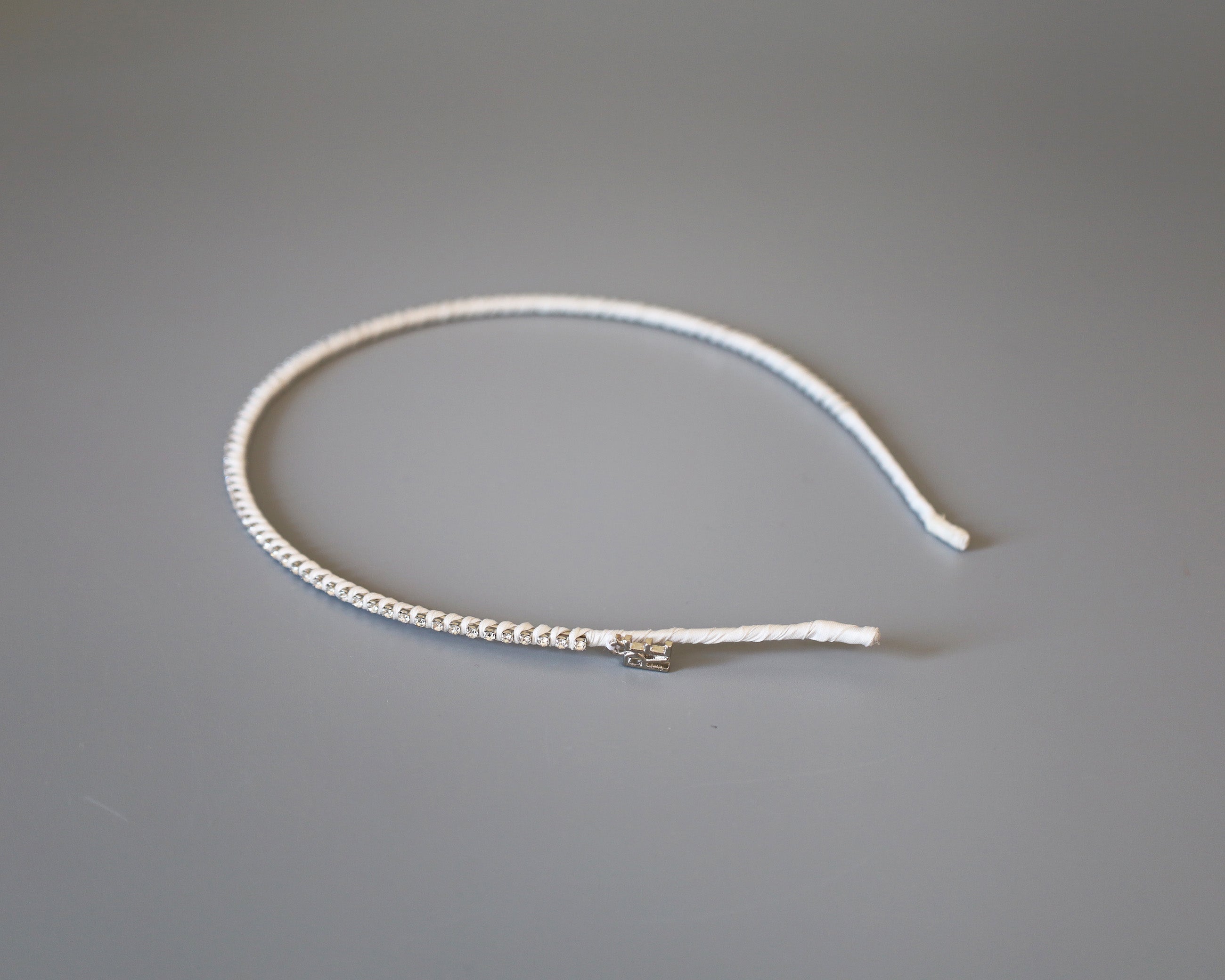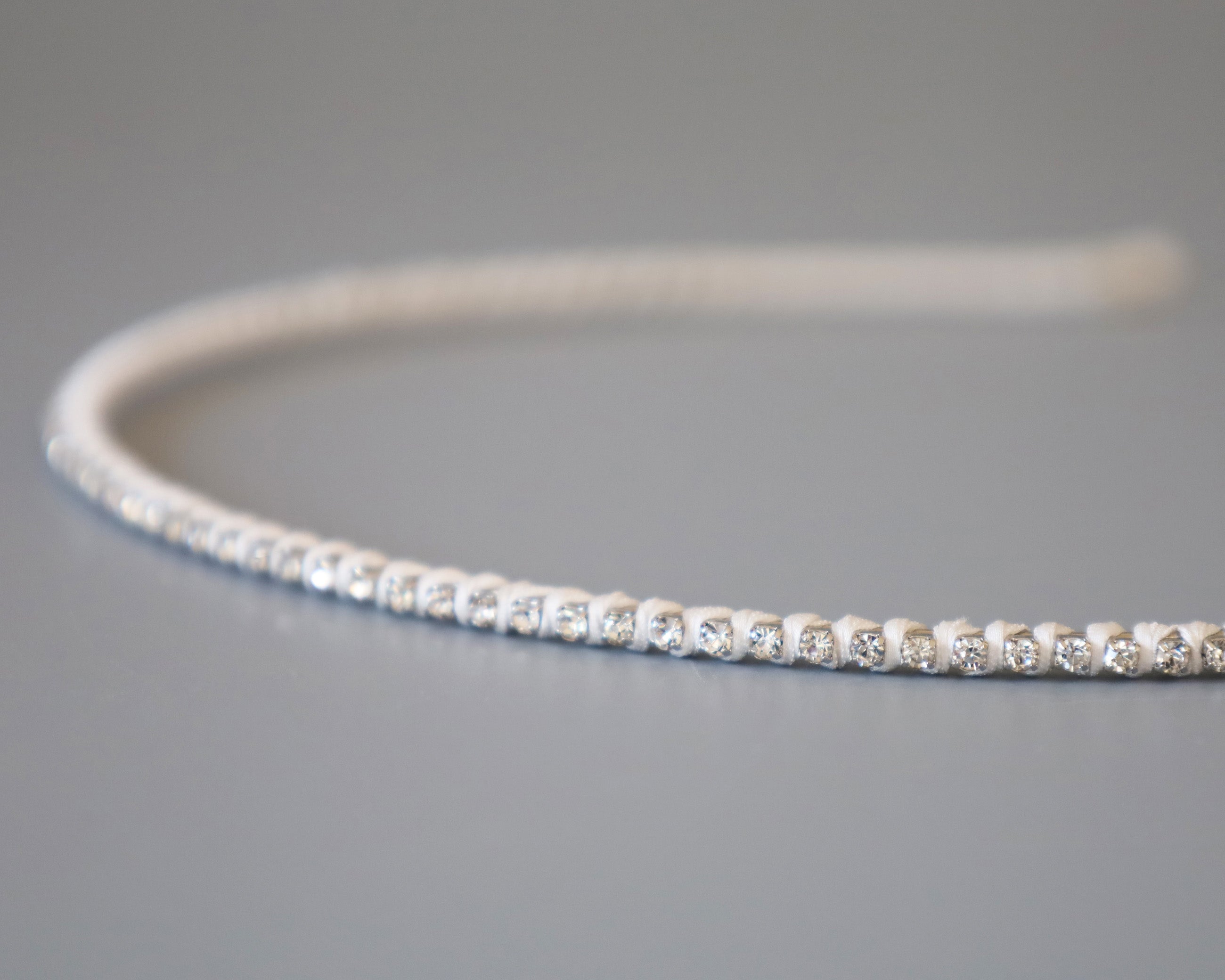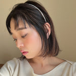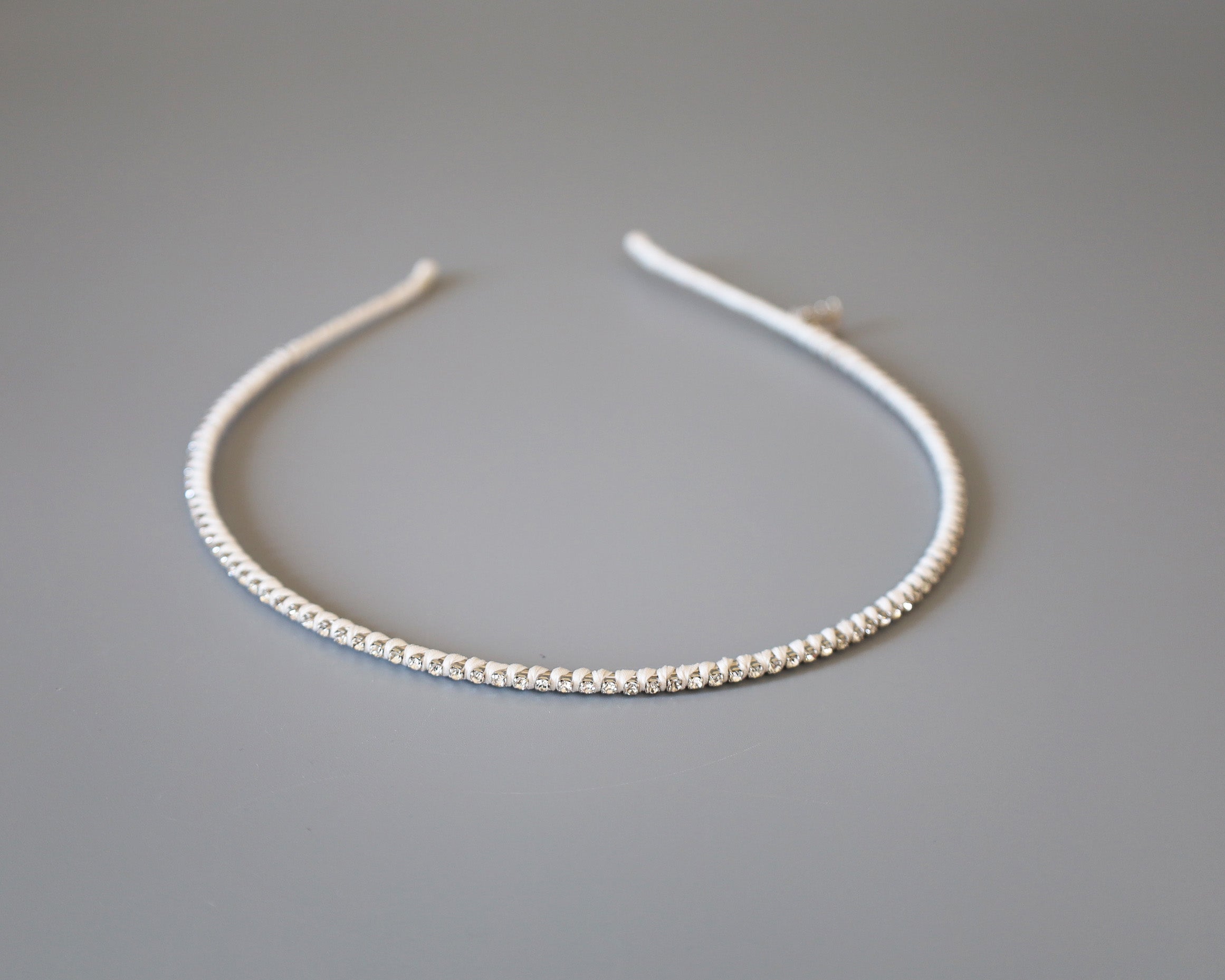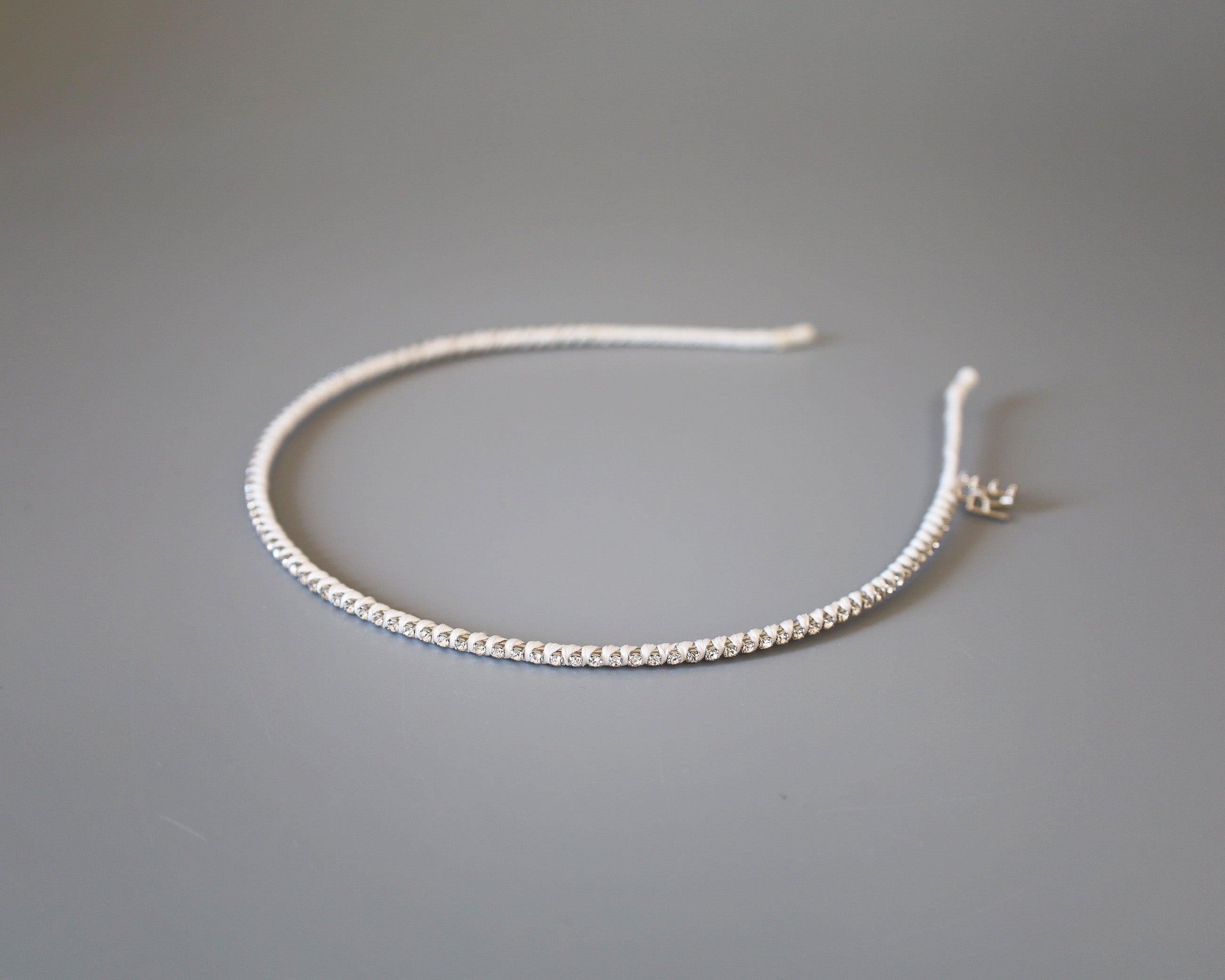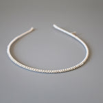 白を基調としたタイトなビジューカチューシャ。