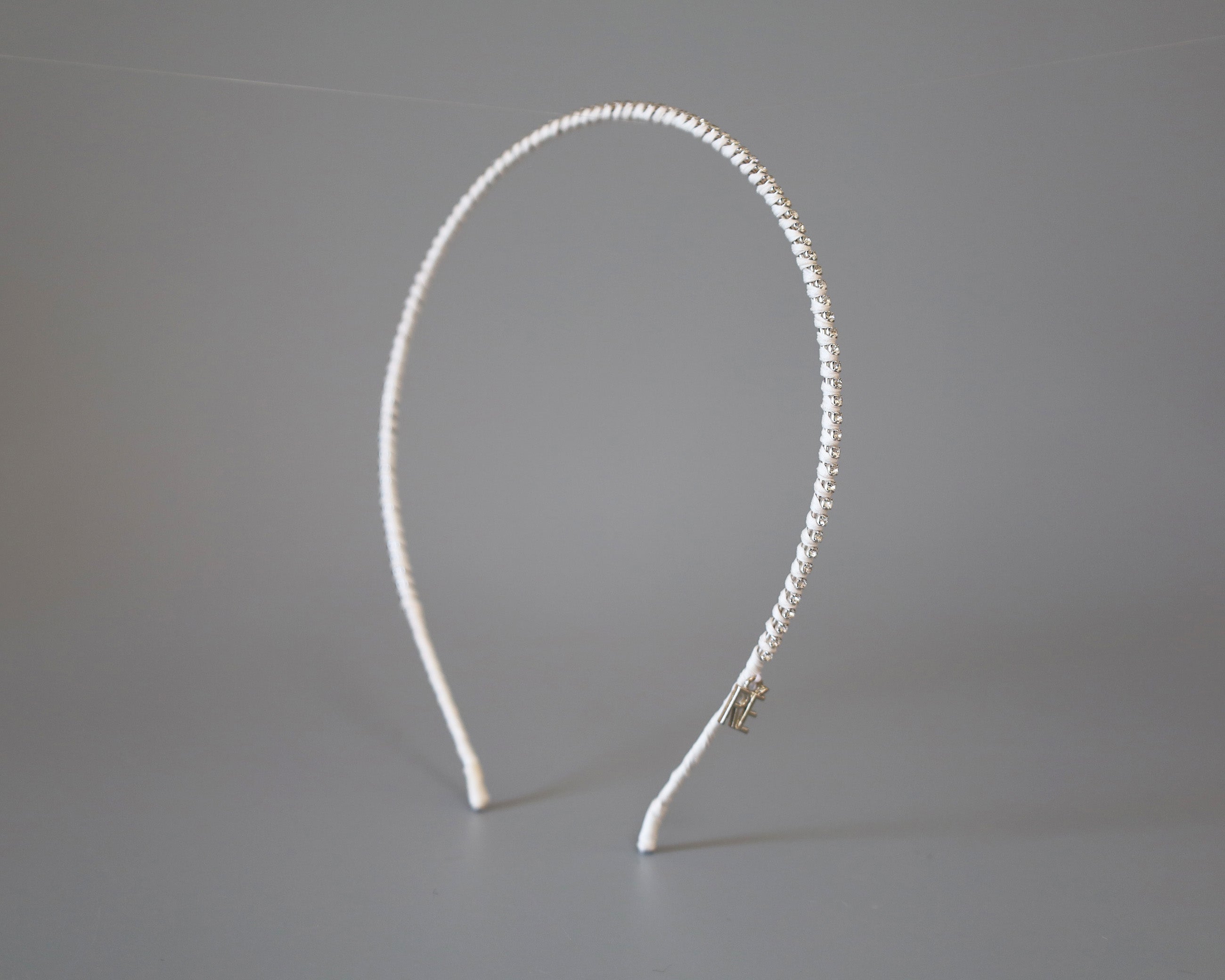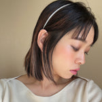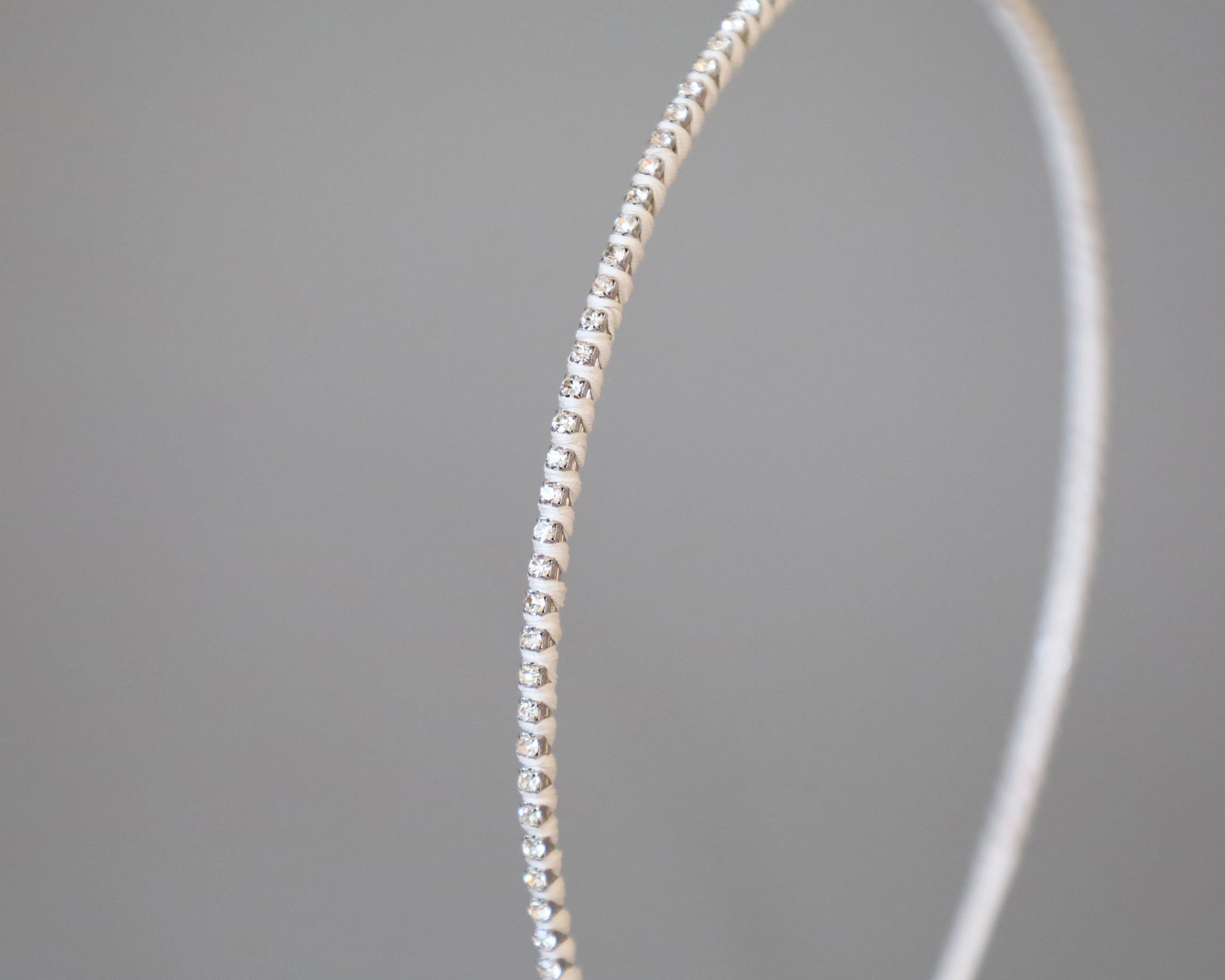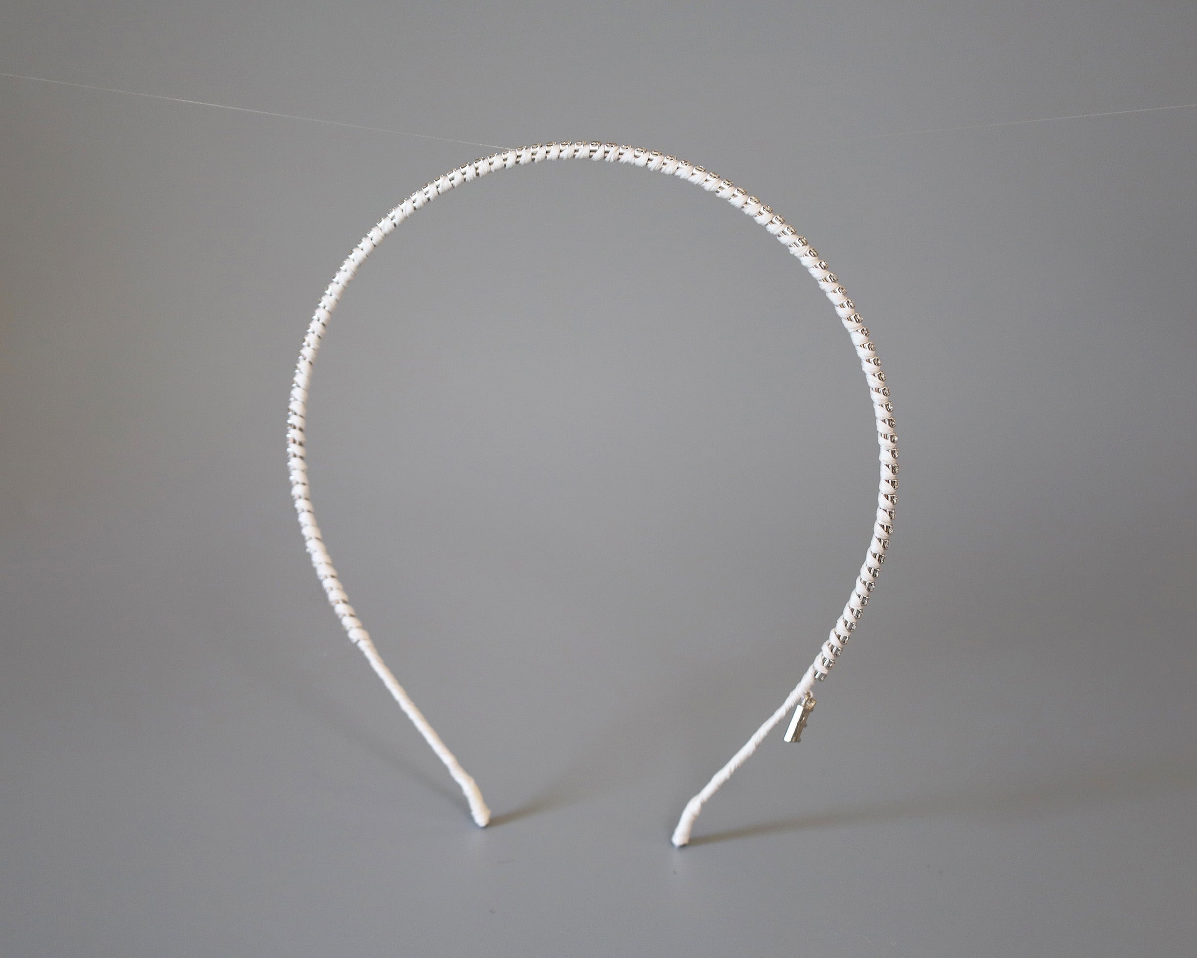 白を基調としたタイトなビジューカチューシャ。