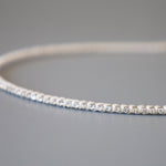 細身のボディにクリアビジューを編み込んで、クリーンな印象のデザインです。