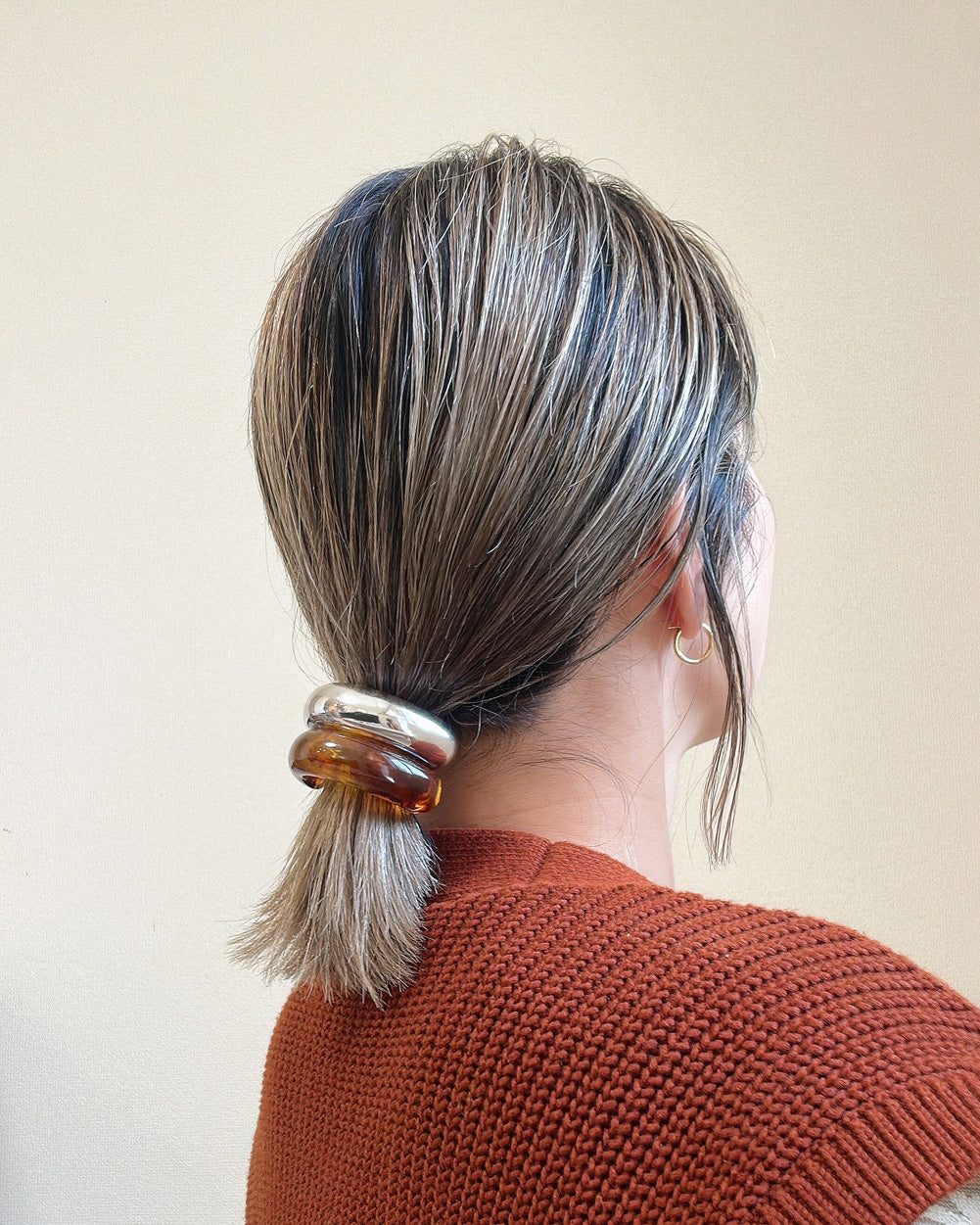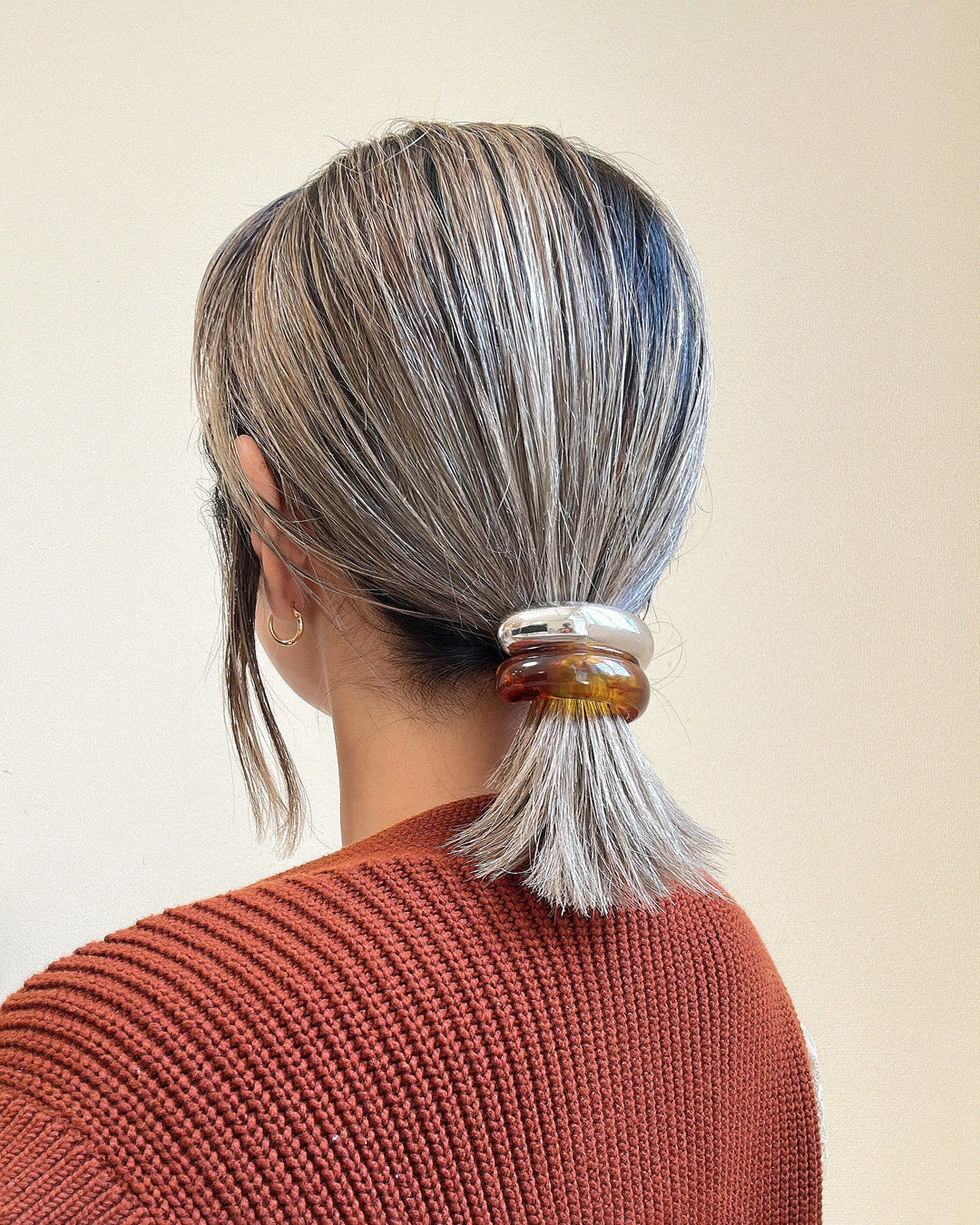 クールなカラーリングと曲線のフォルムがシンプルなヘアスタイルにこなれ感をプラスしてくれます。
