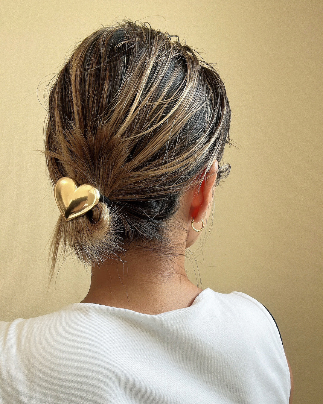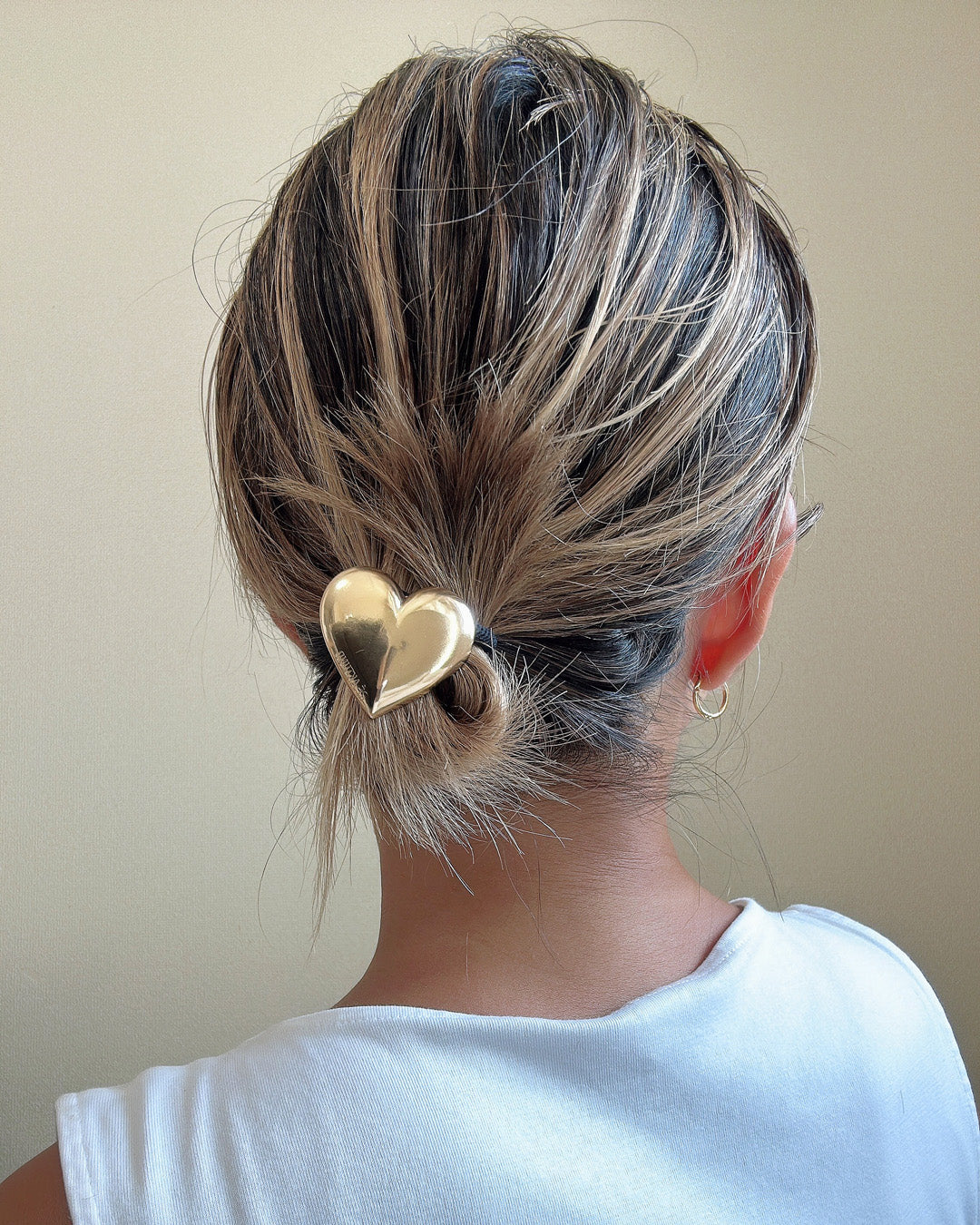 We recommend pairing this item with a ponytail, or a half-up style if you have short hair.