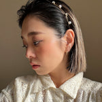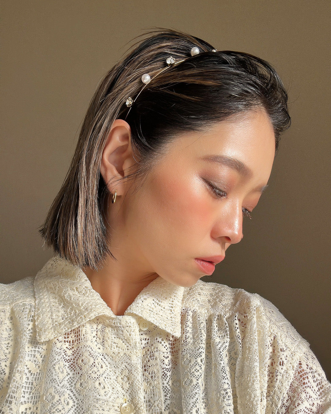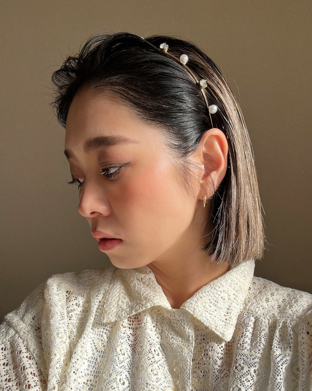 ヘアの隙間からゴールドのボディがチラ見えしつつ、デコレーション部分が際立つと大人ガーリーなスタイルが完成します。