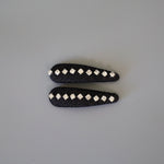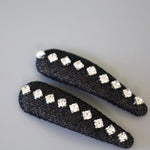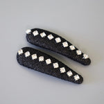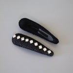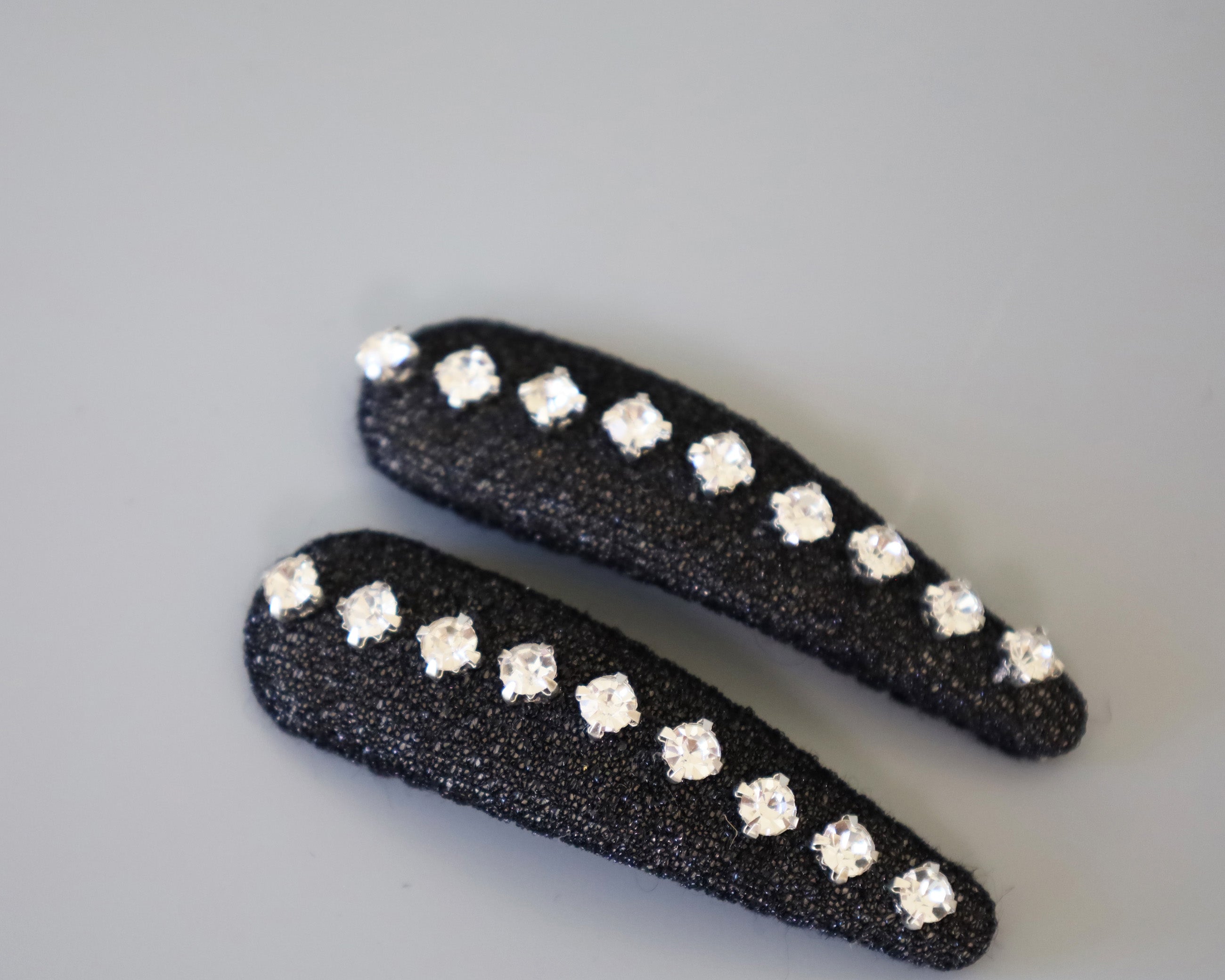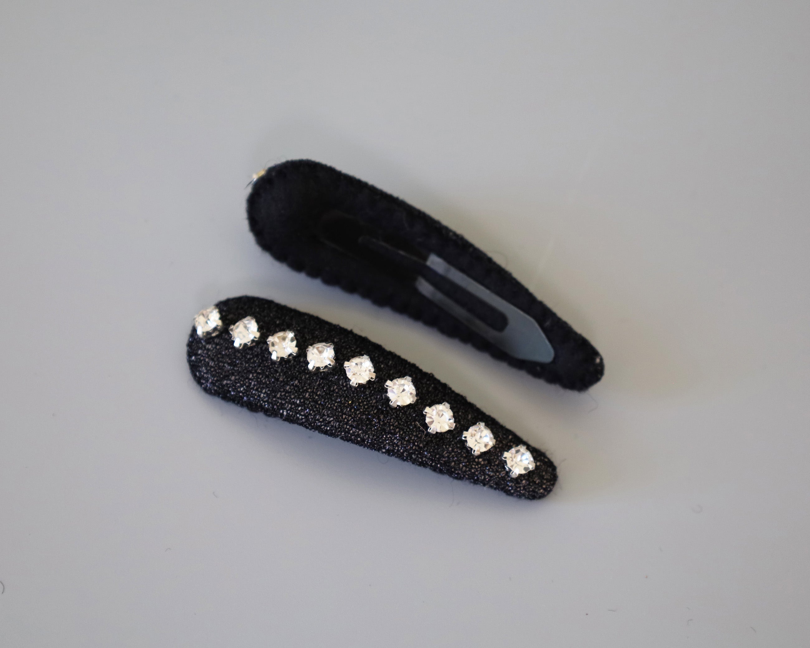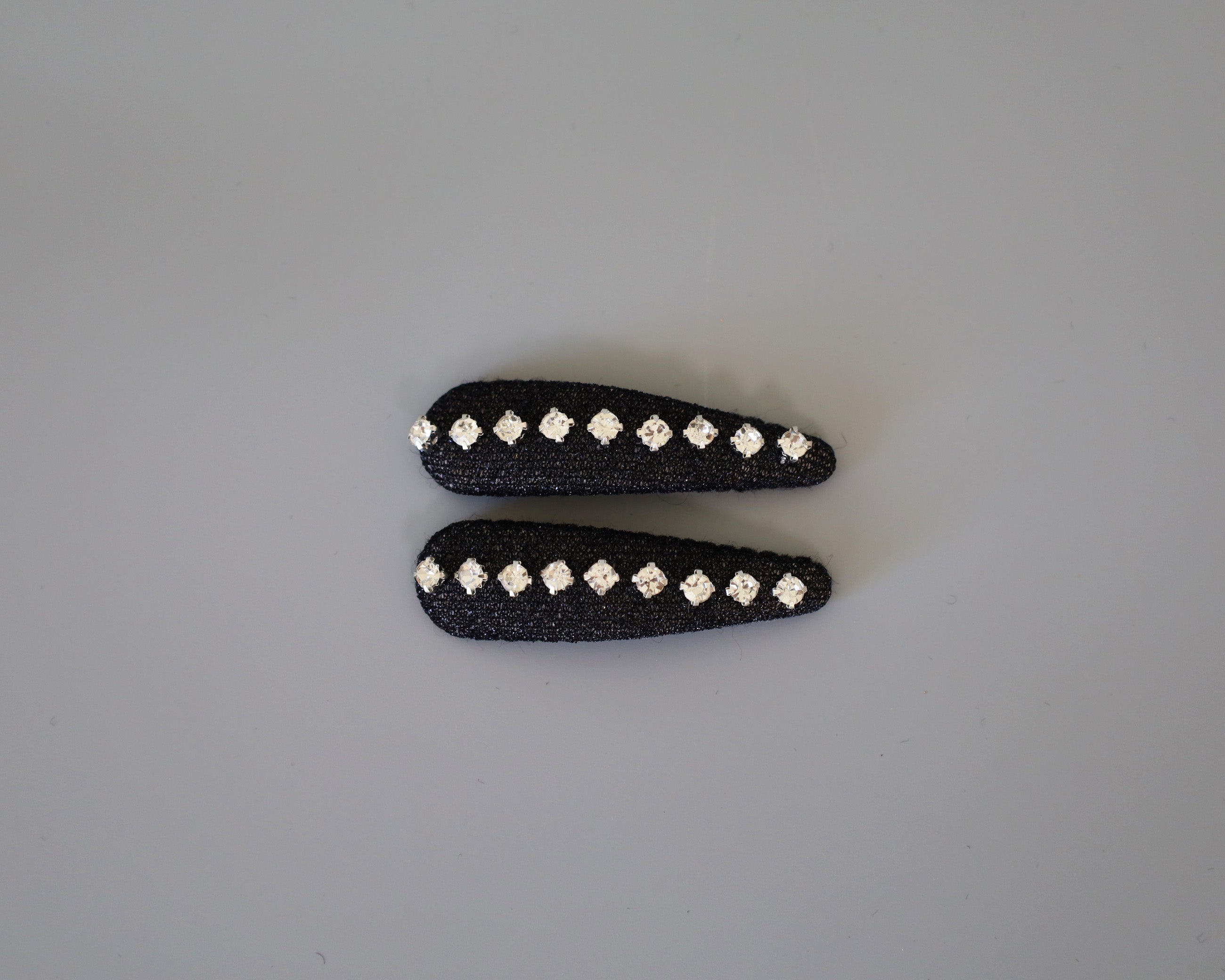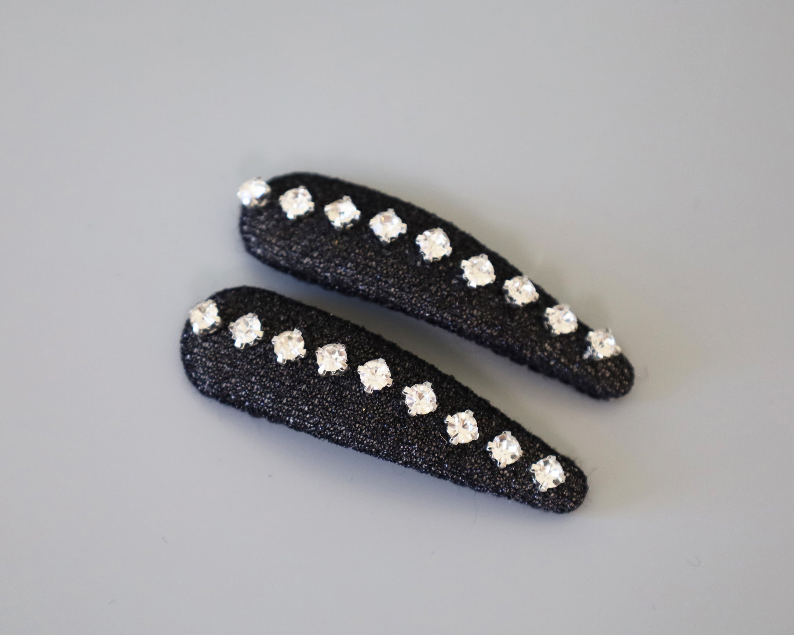 ブラックベースの繊細なラメ生地で仕立てたヘアピン。