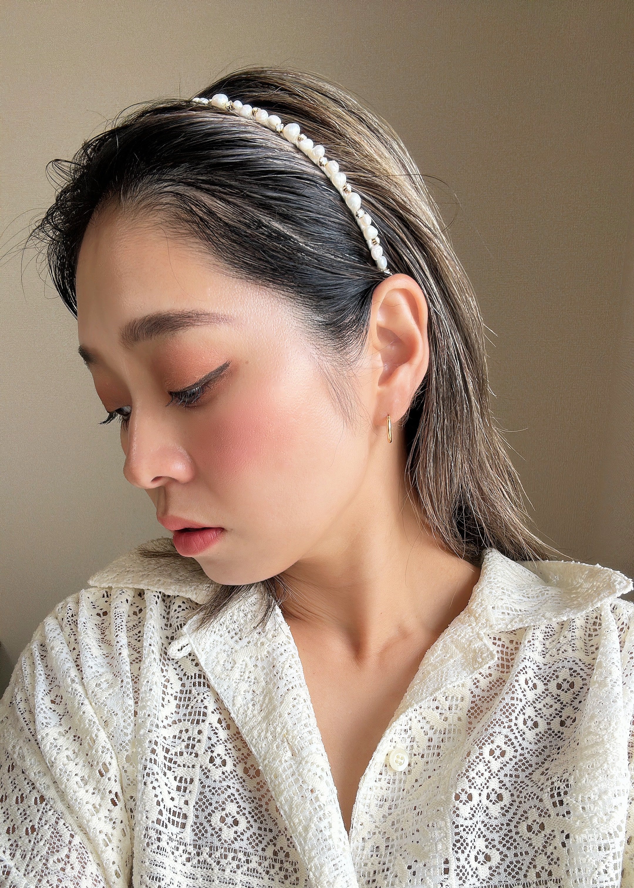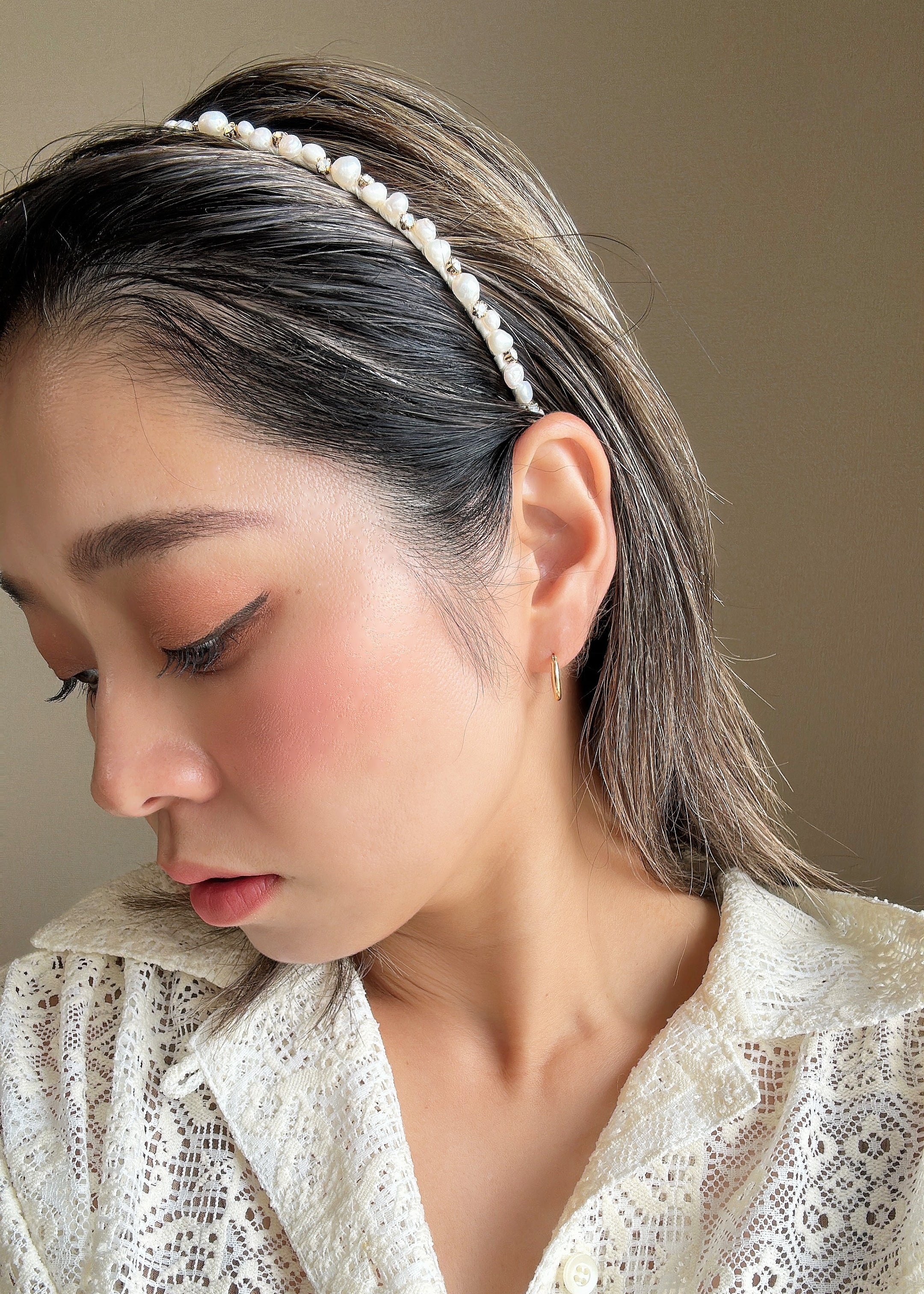 Narrow Studs Headband White Mix Pearl