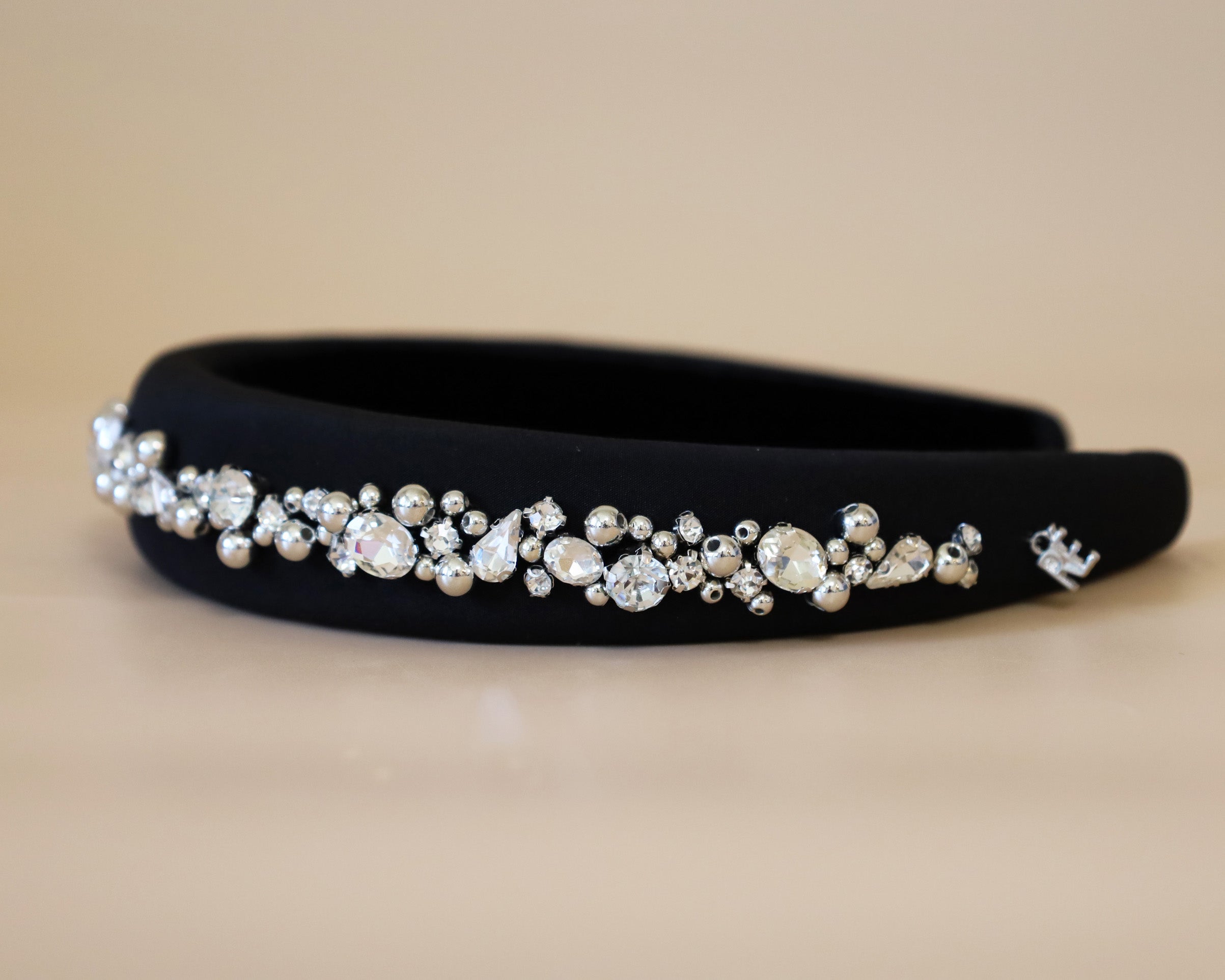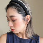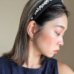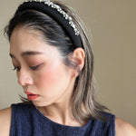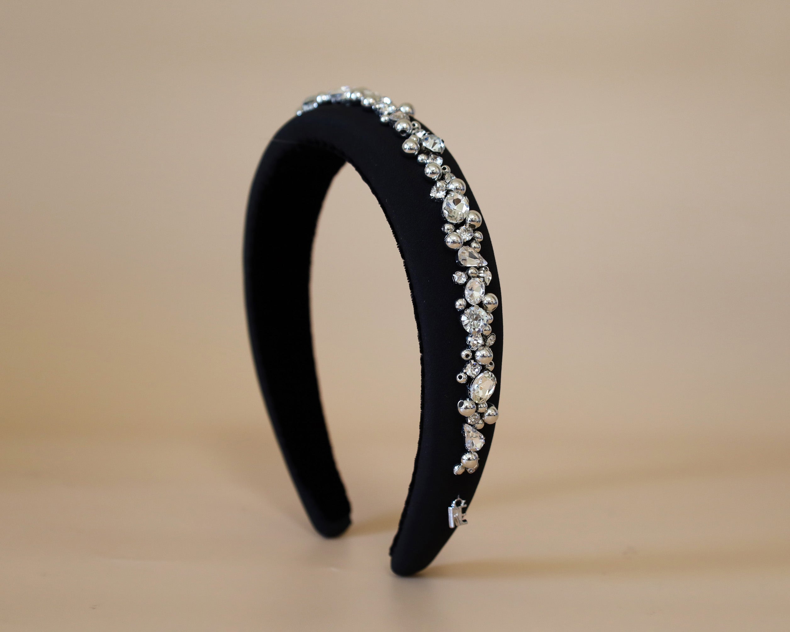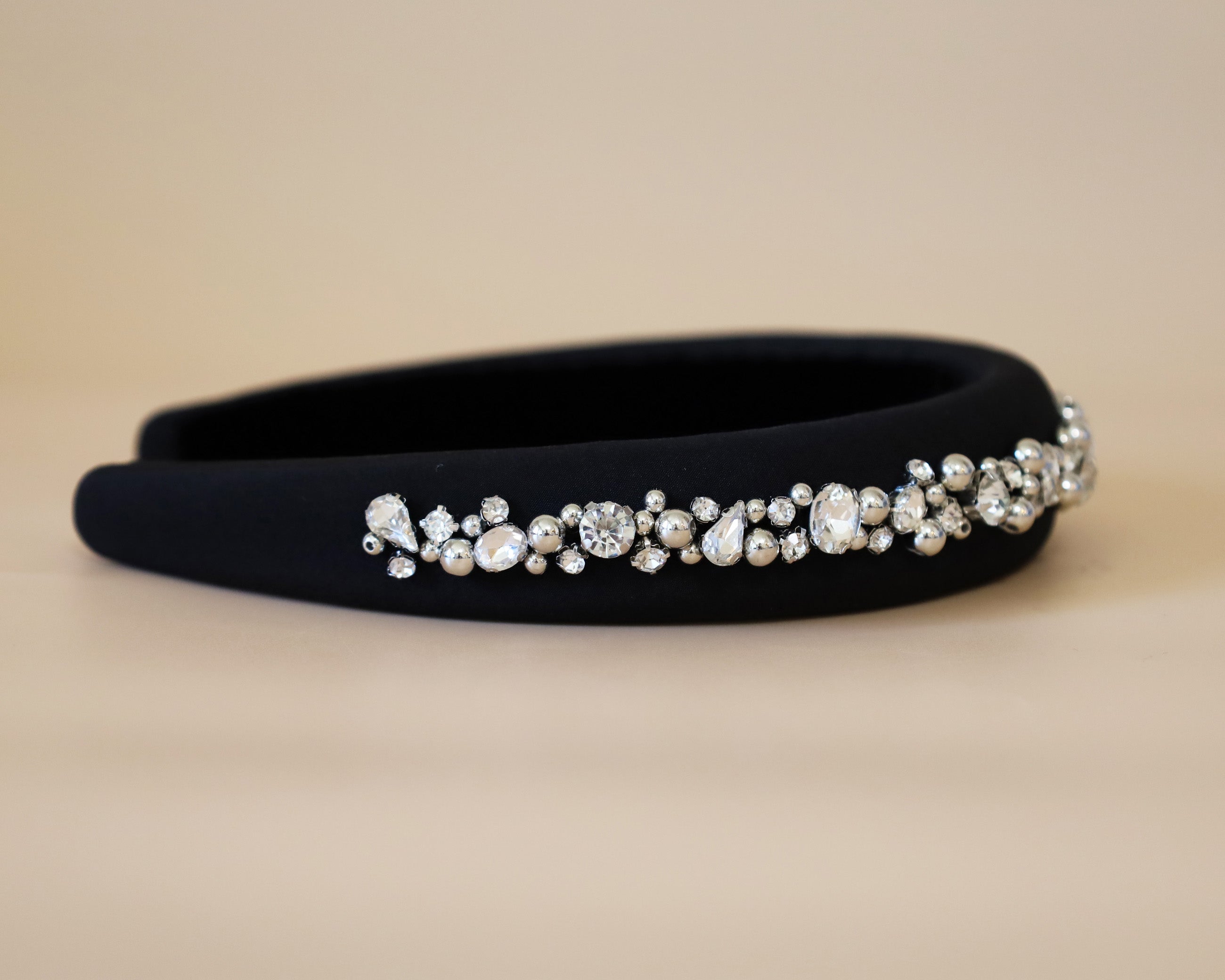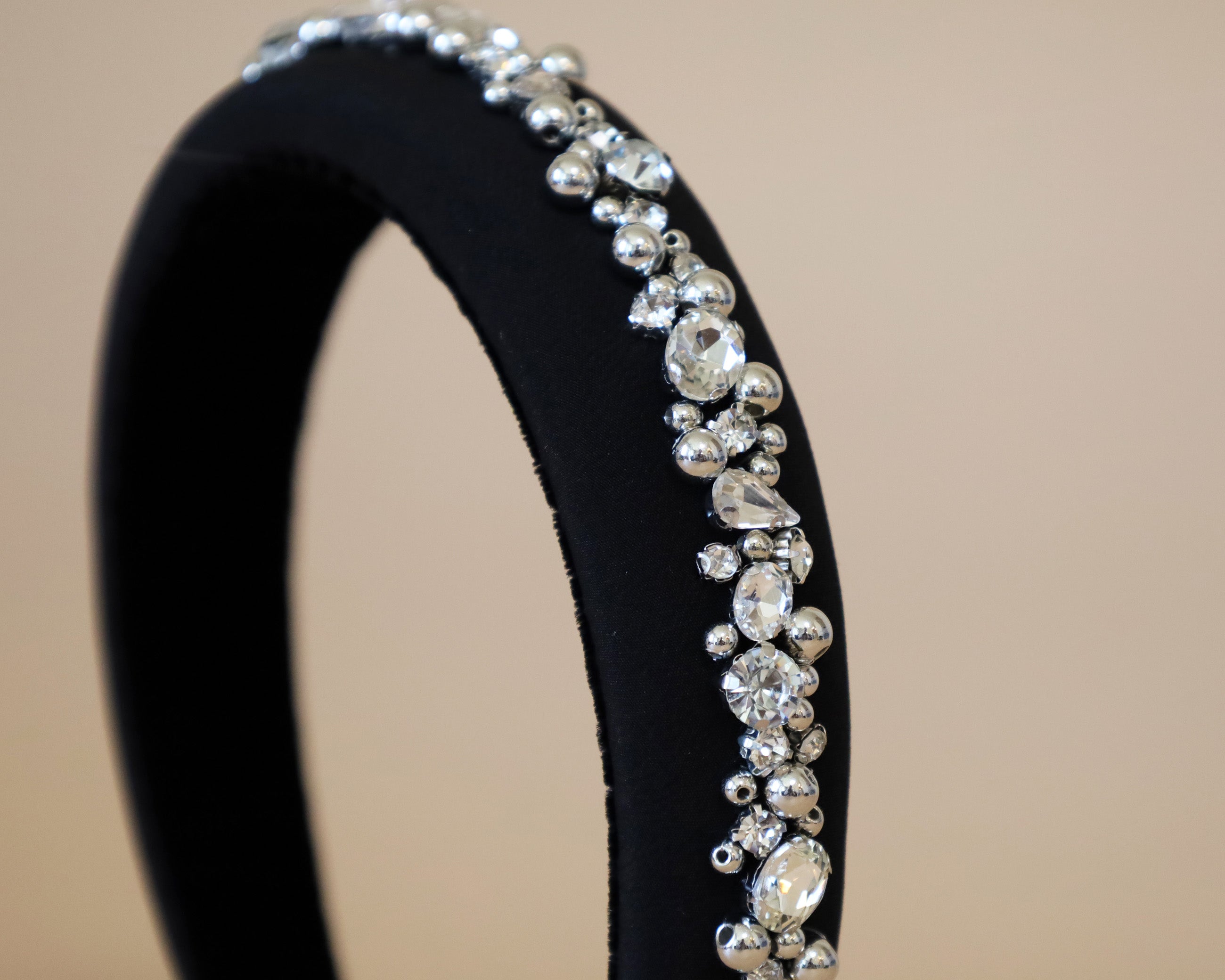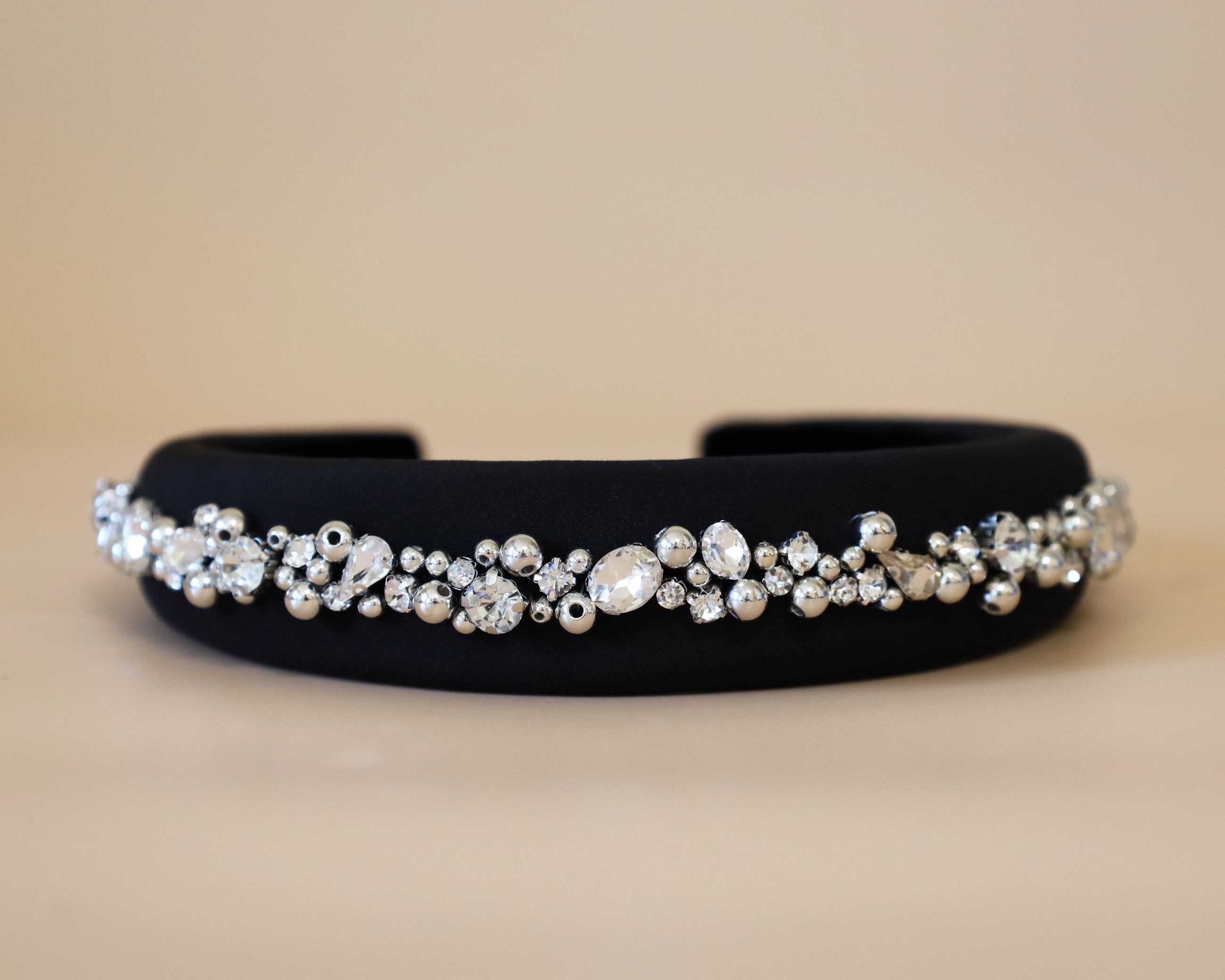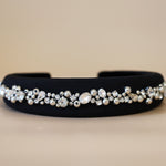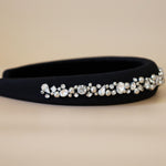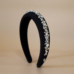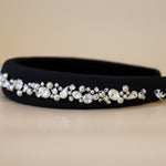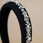 A gorgeous design featuring a simple black headband with plenty of lines of jewels.