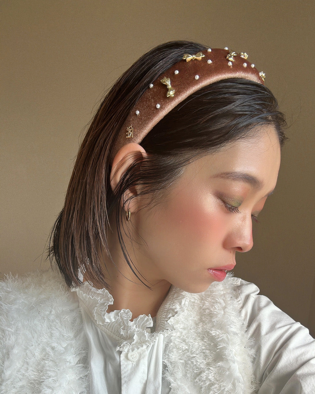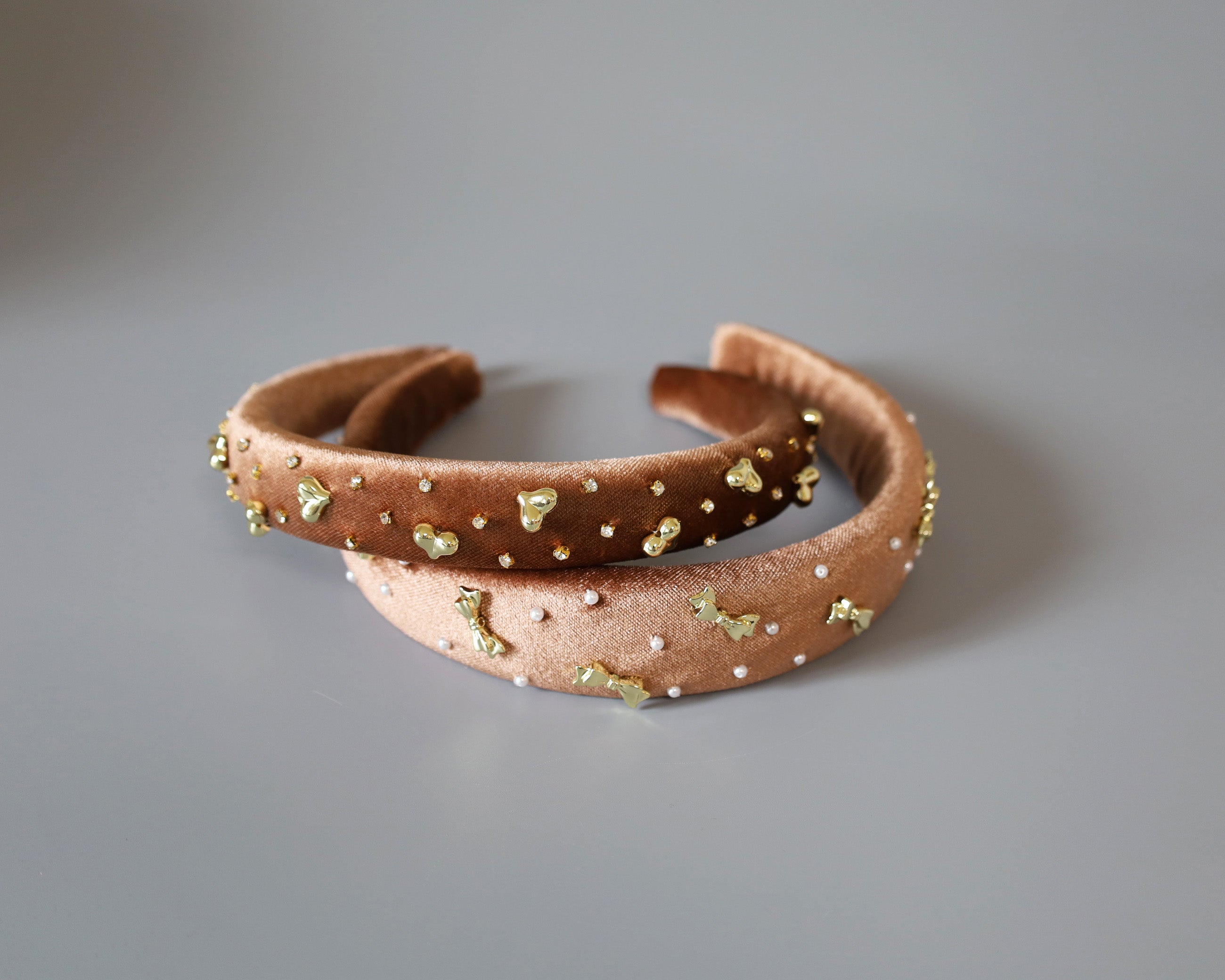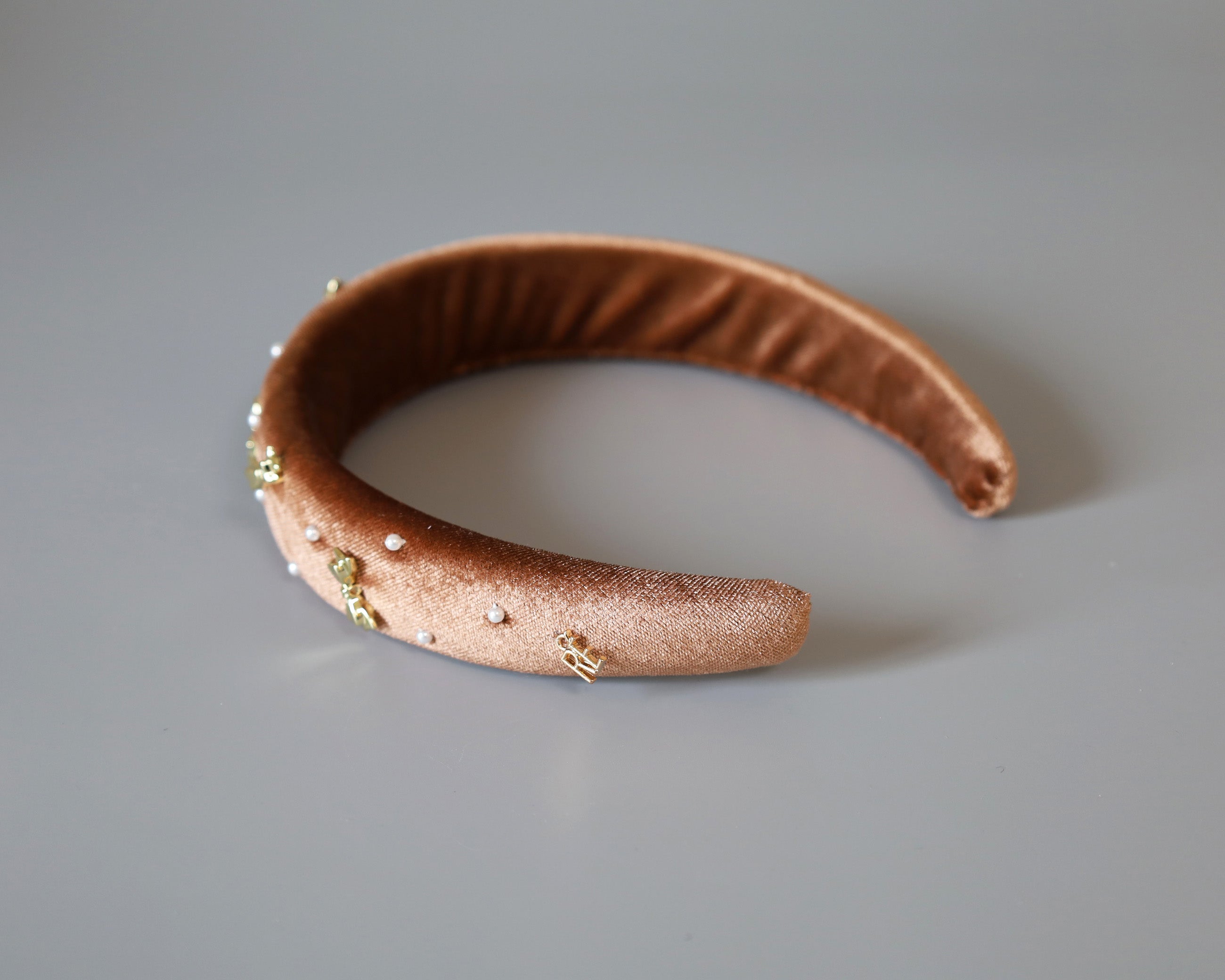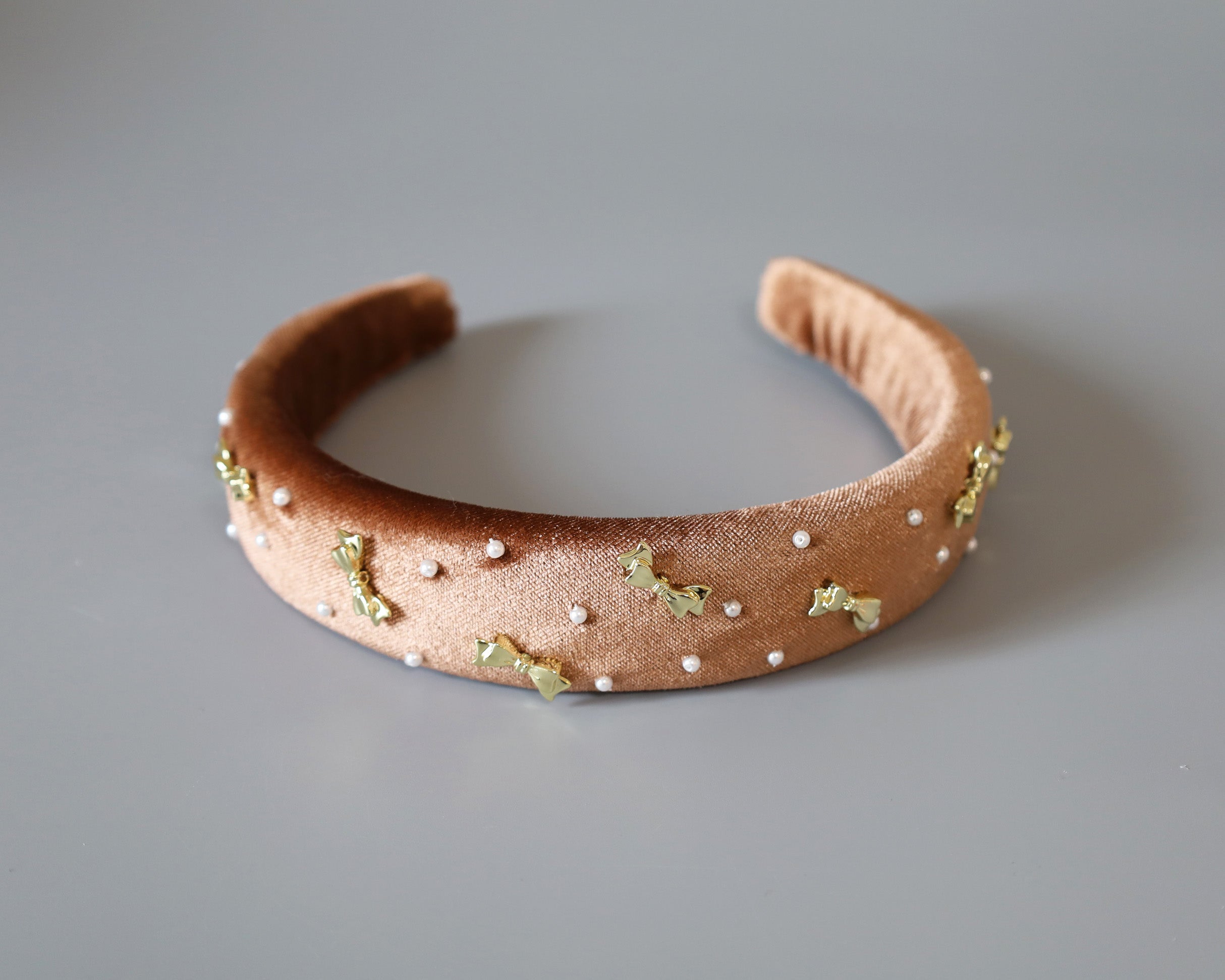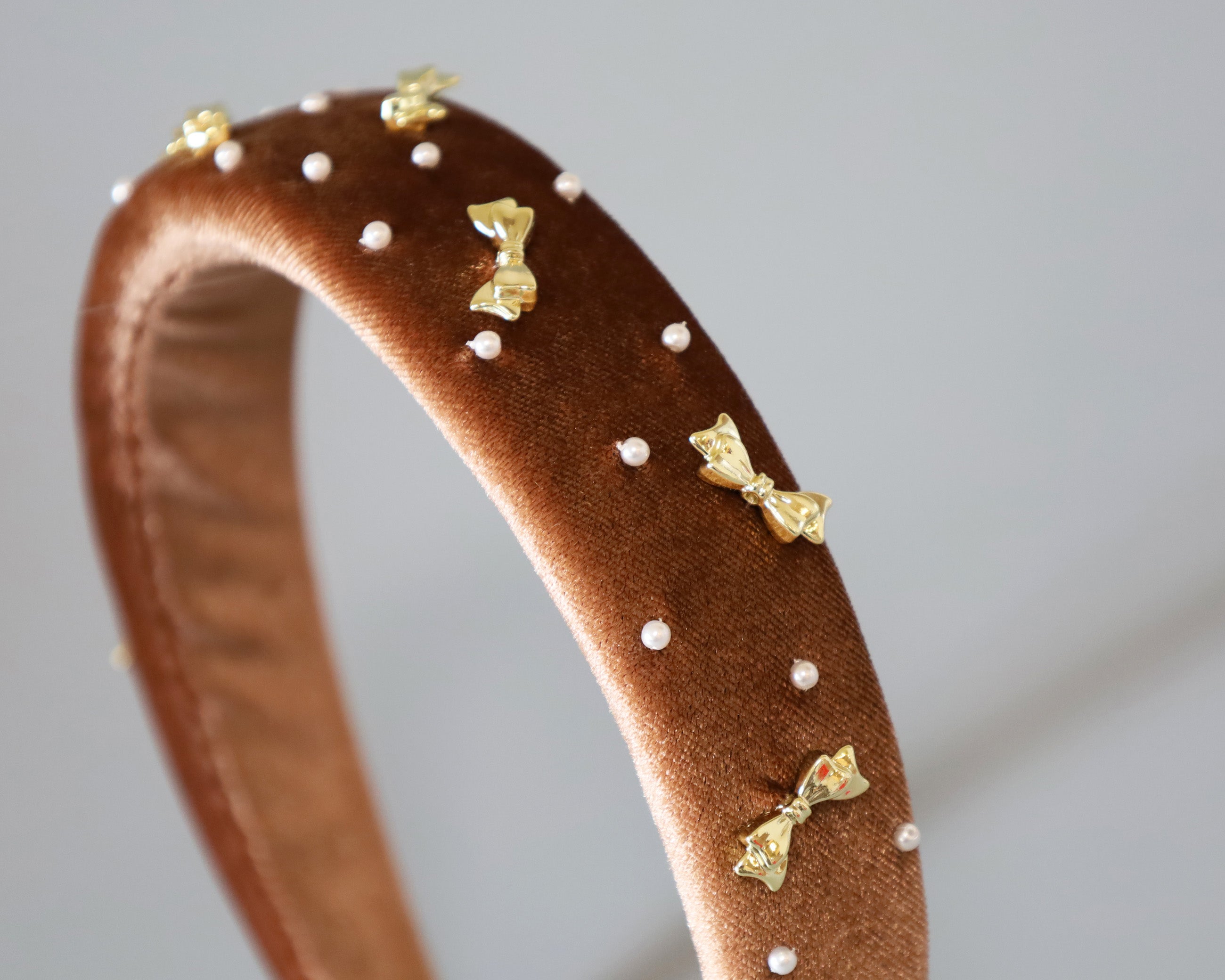 キャラメルやクリームブリュレのようなスイートなブラウンのベロアカチューシャ。
