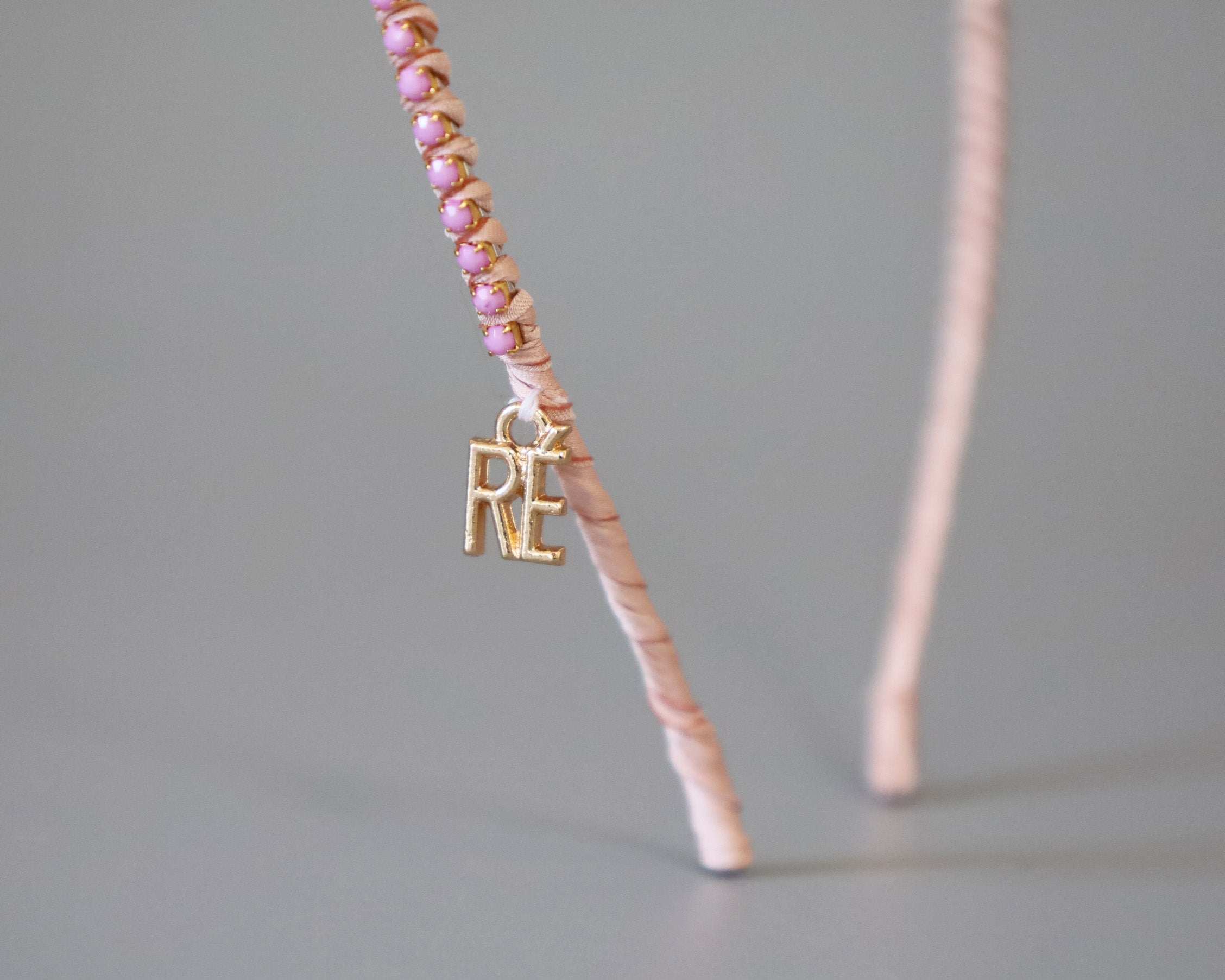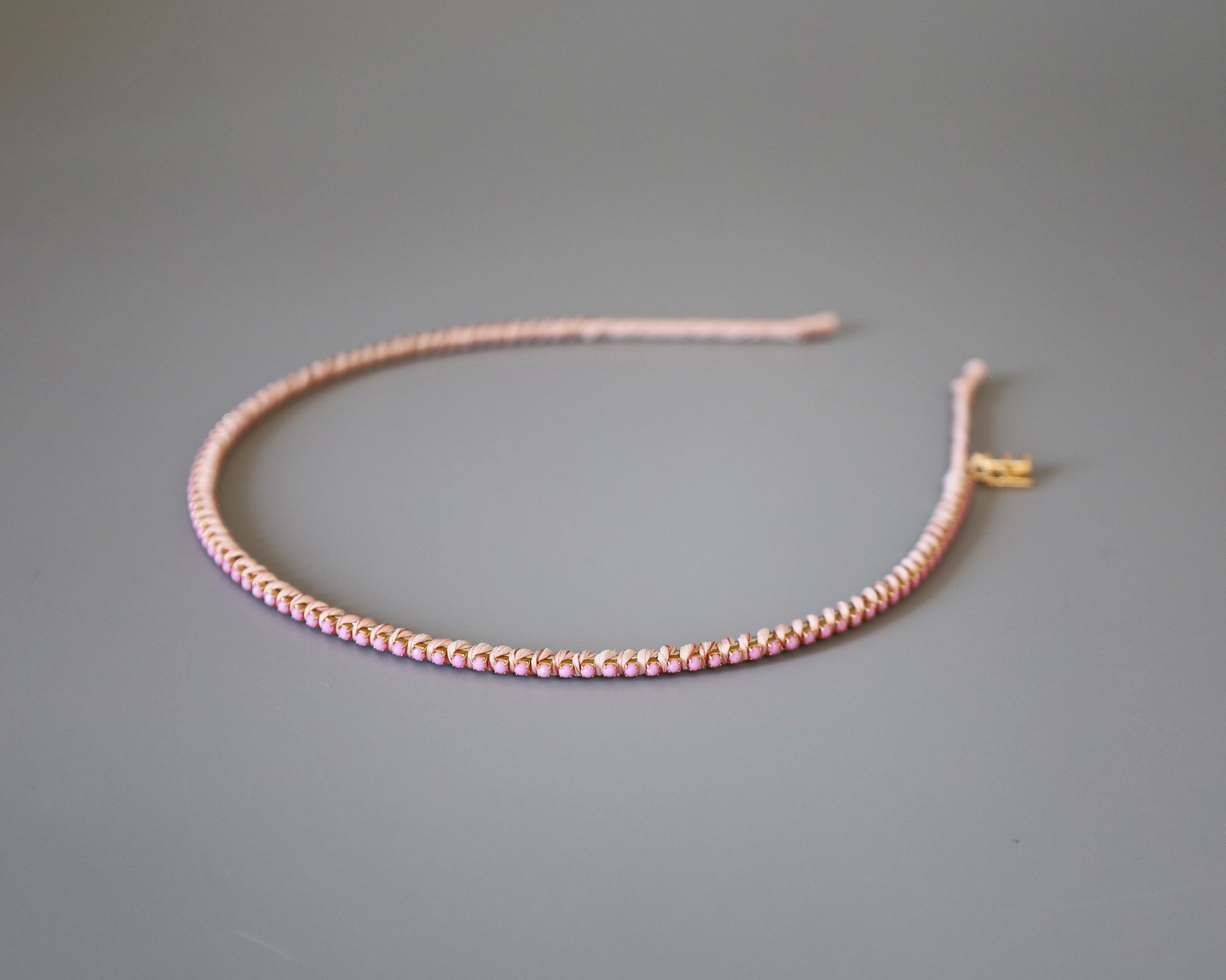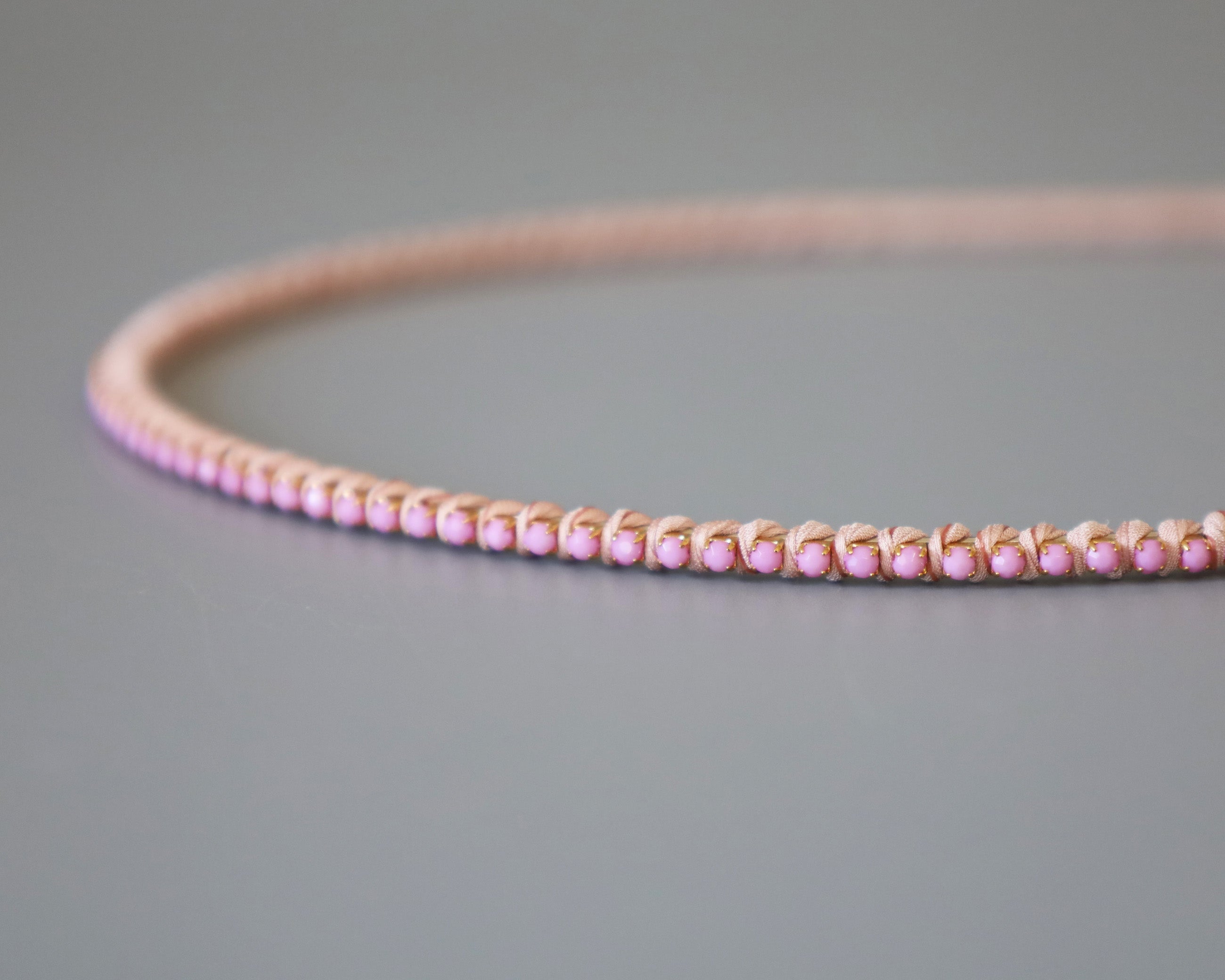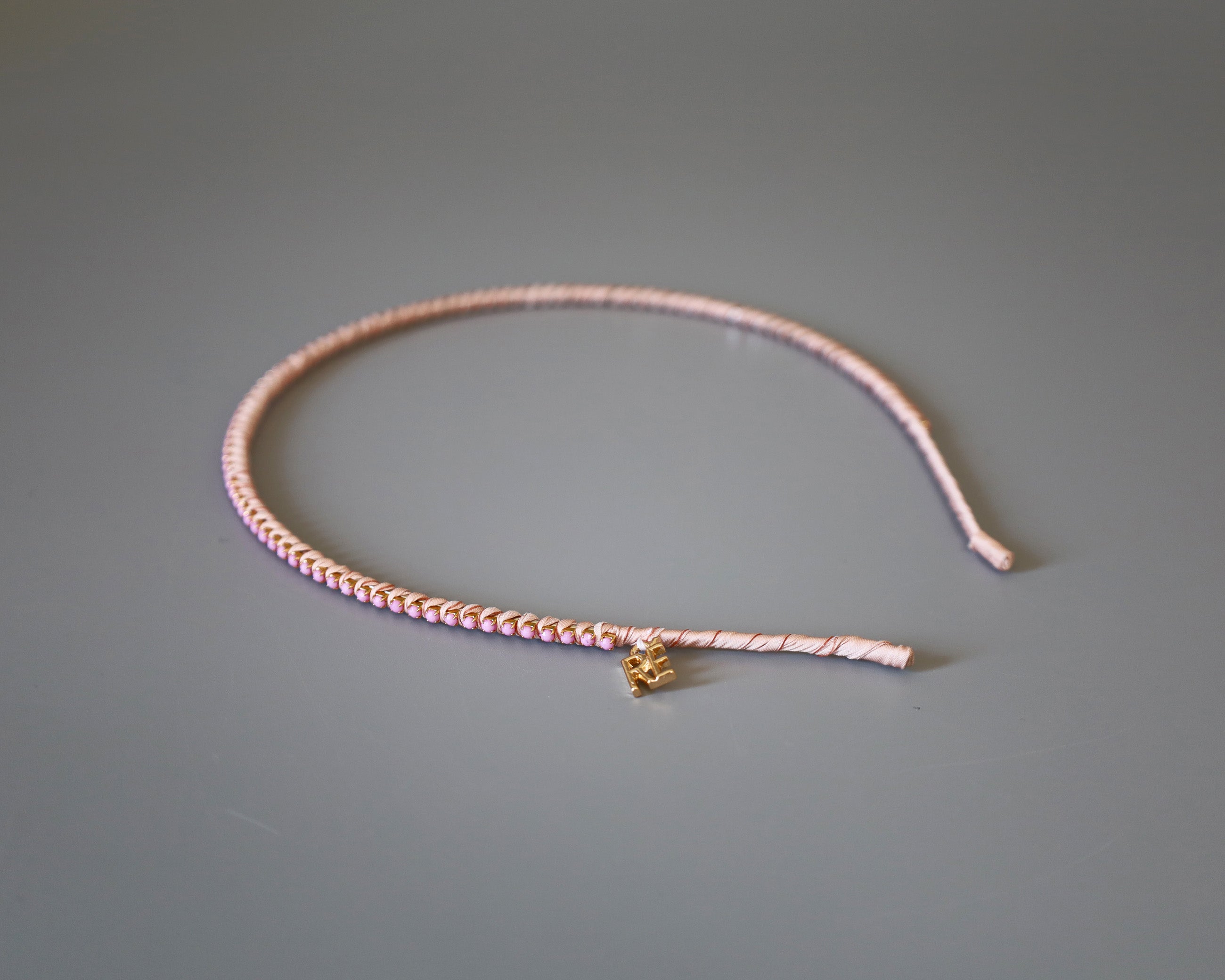 やわらかなペールピンクに同系色のビジューをあしらったカチューシャ。