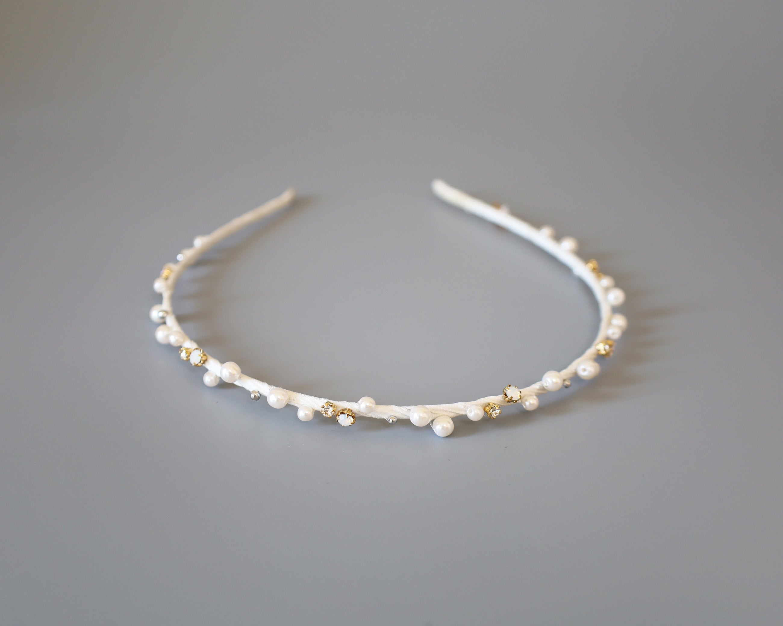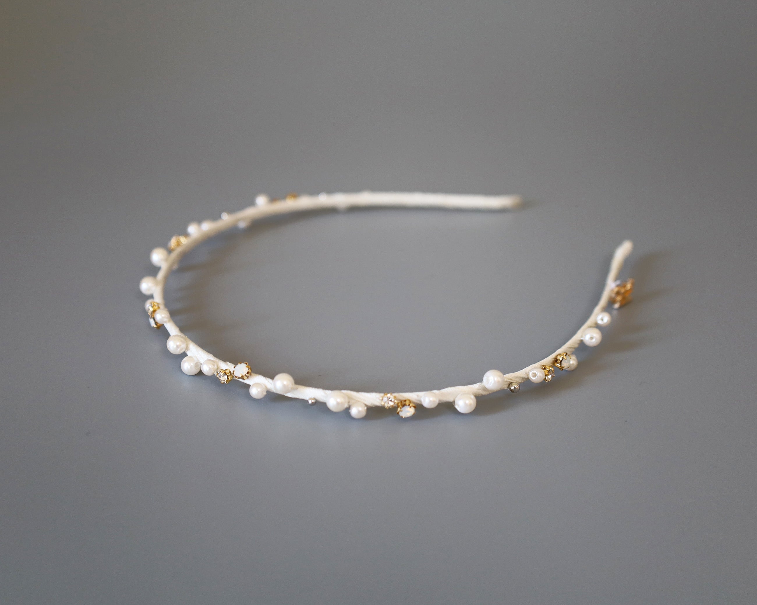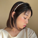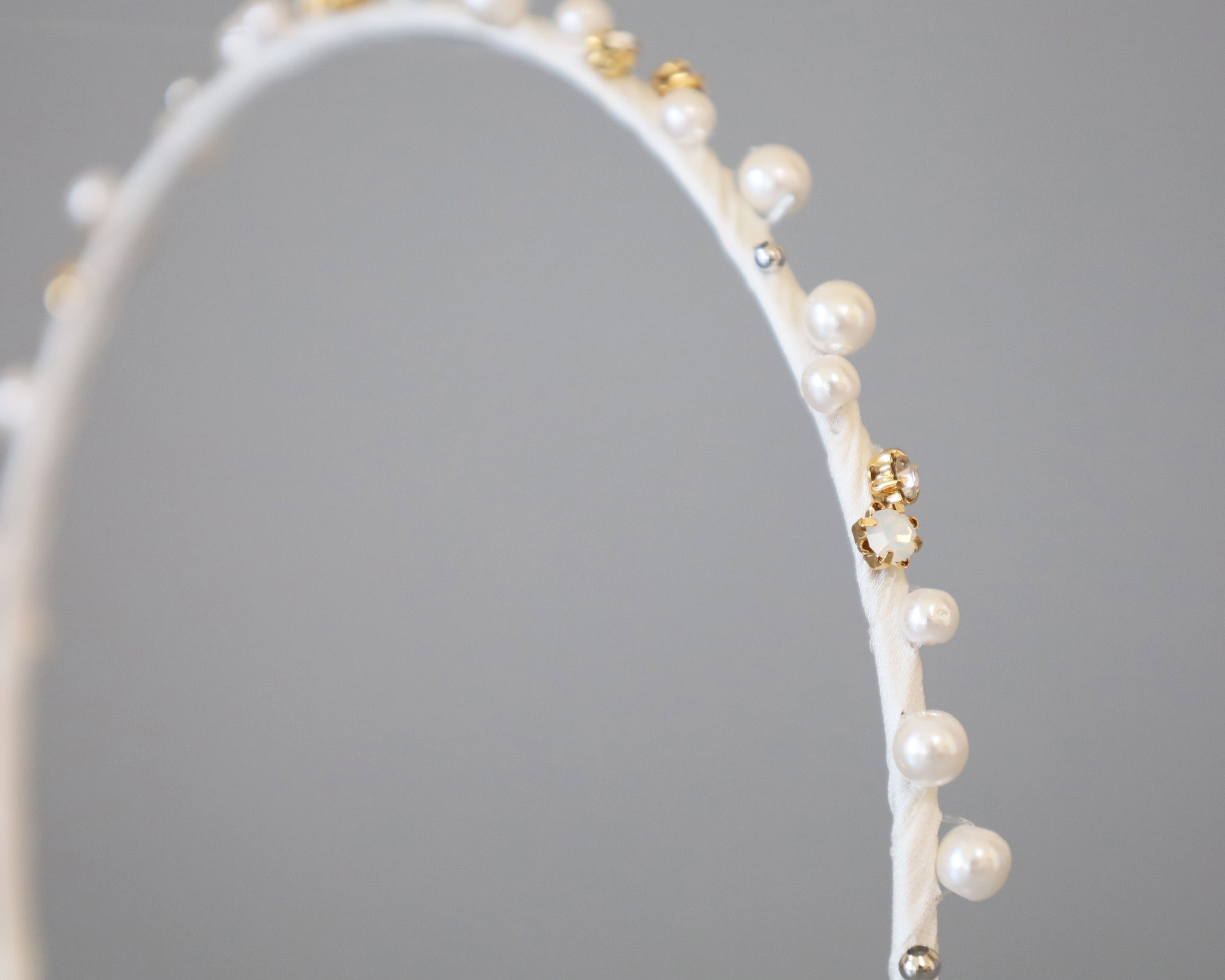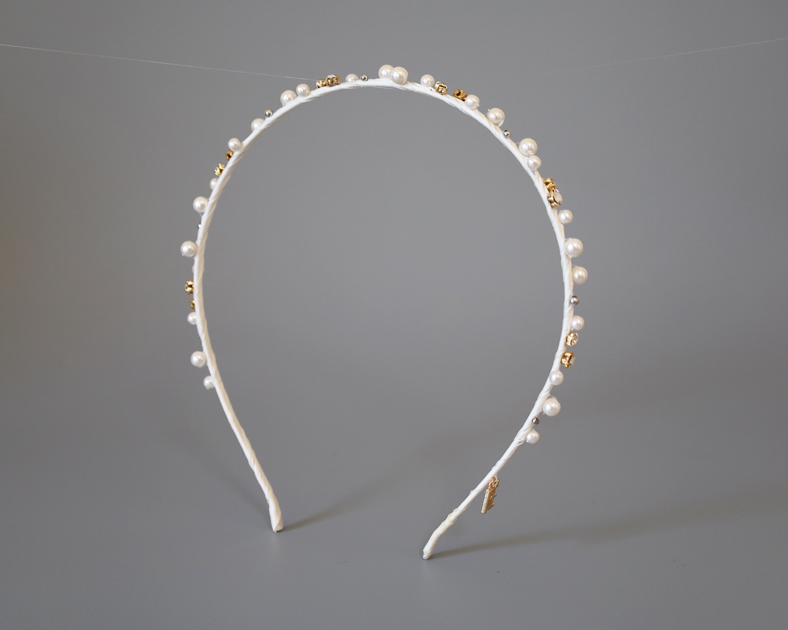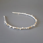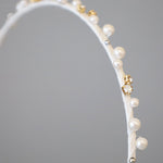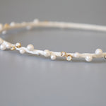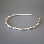 ホワイト×ゴールドが繊細でエレガントなタイトカチューシャ。