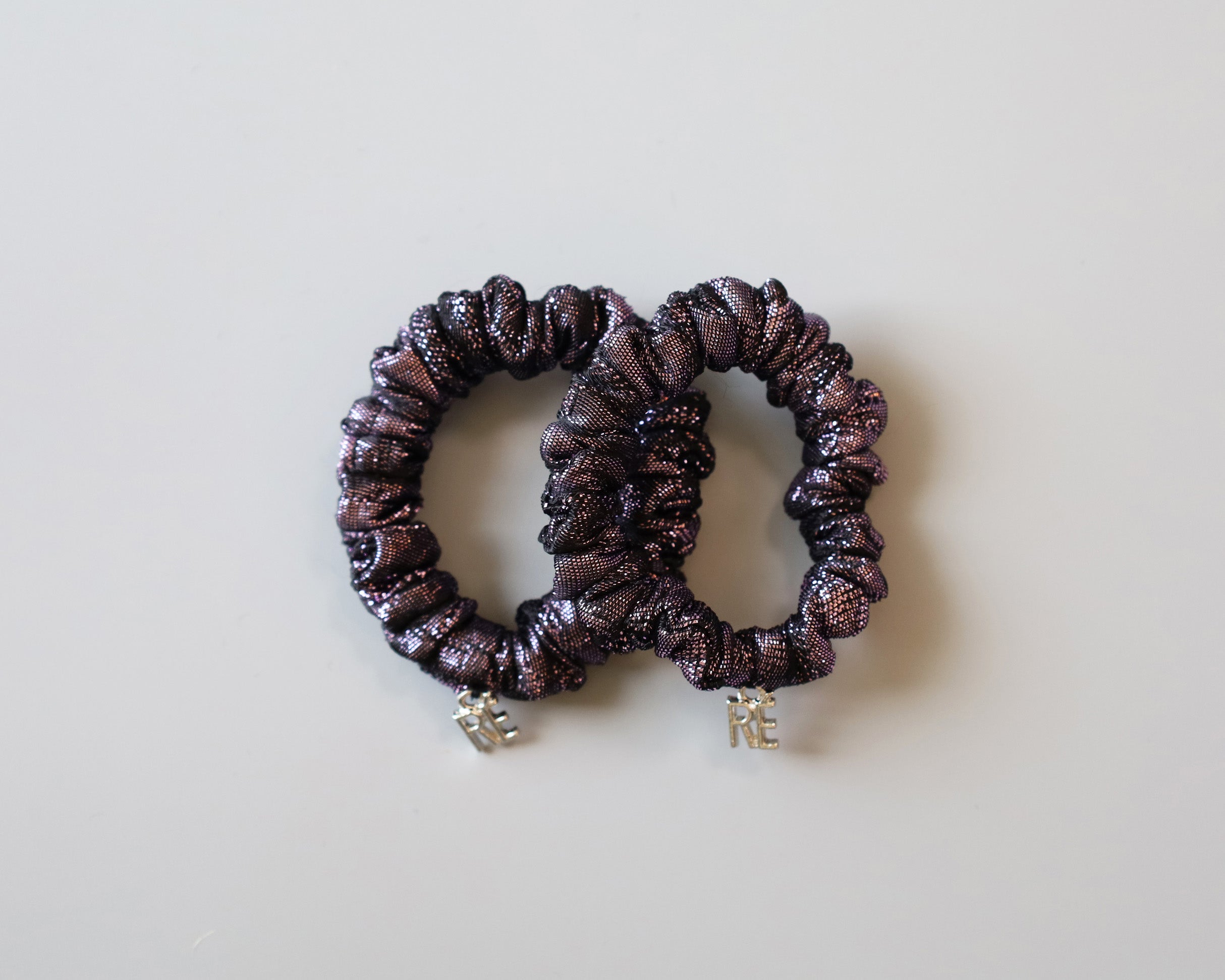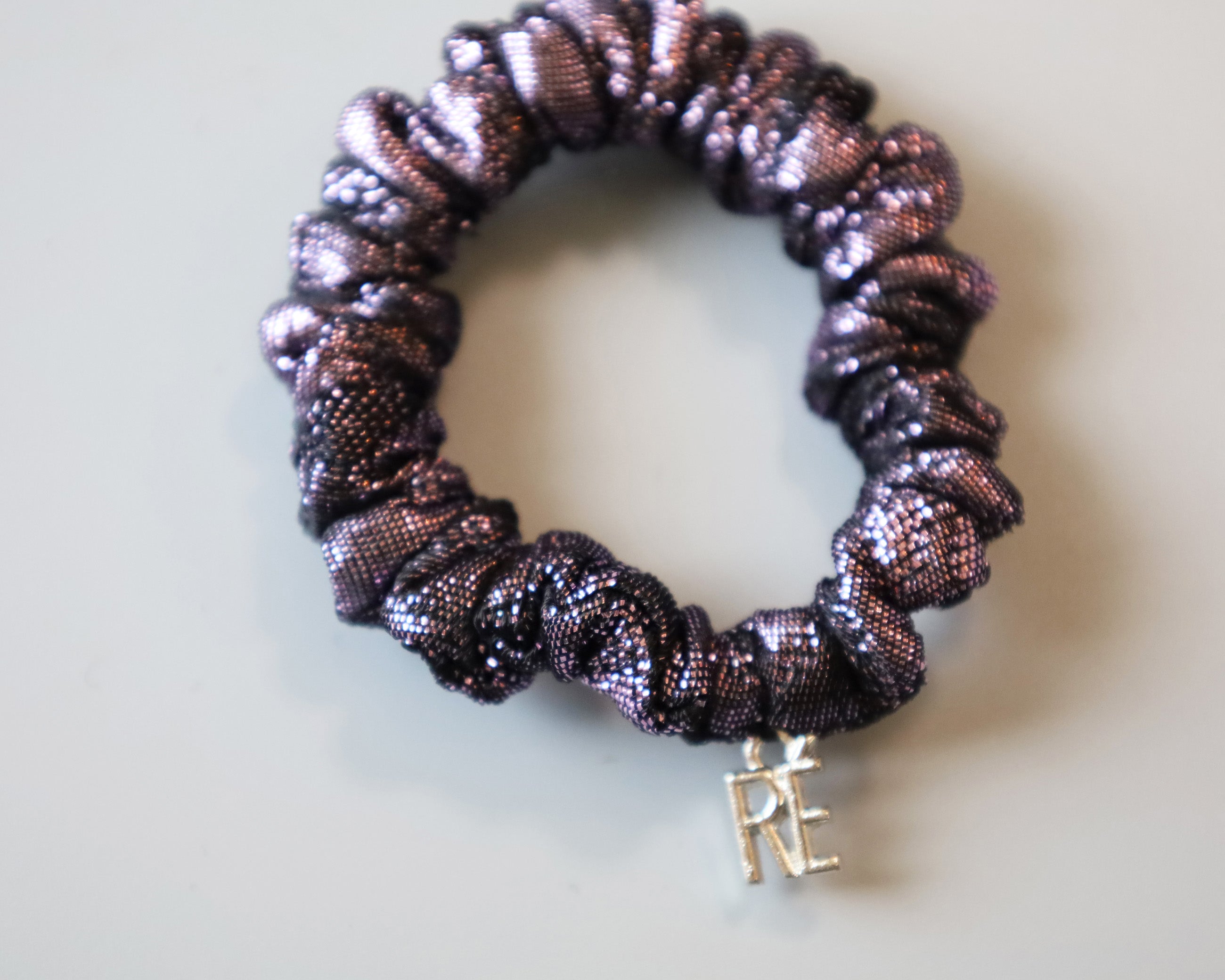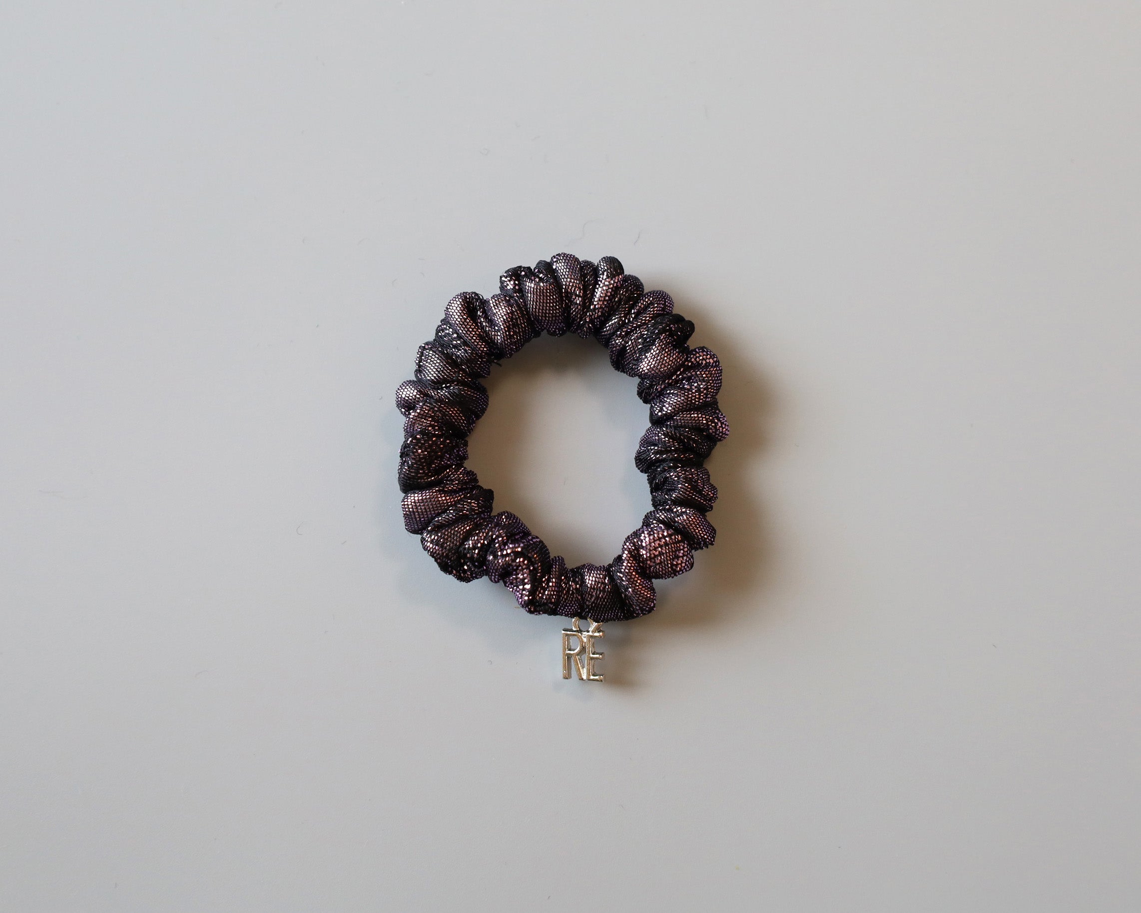 パープルのメタリックな質感が大人かわいいミニシュシュ。