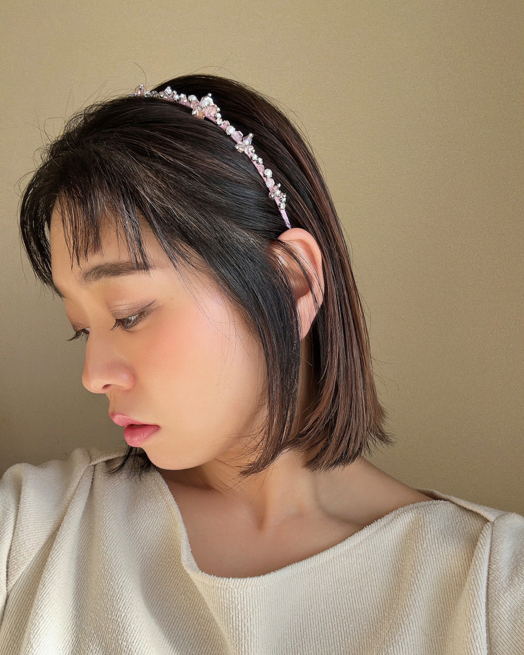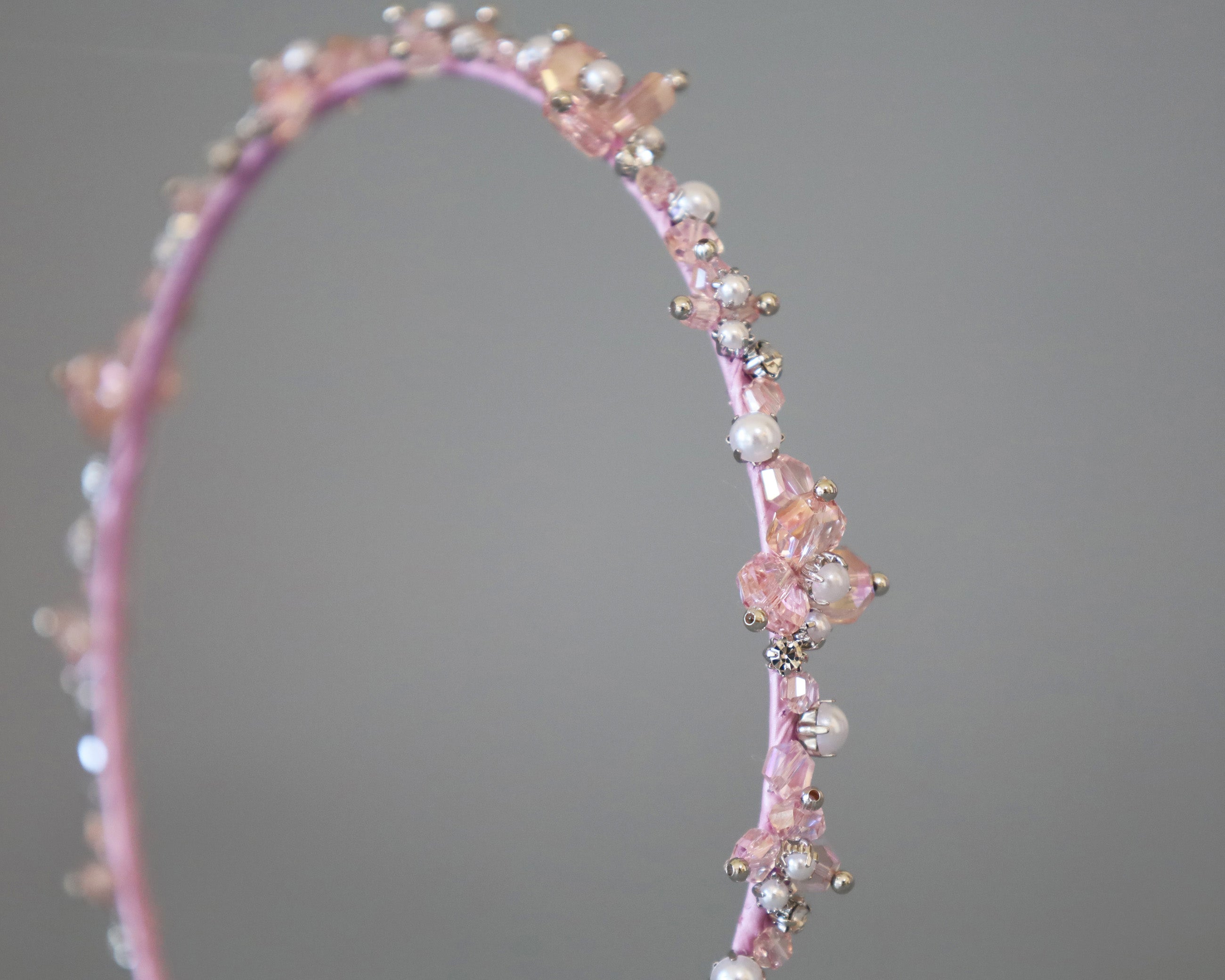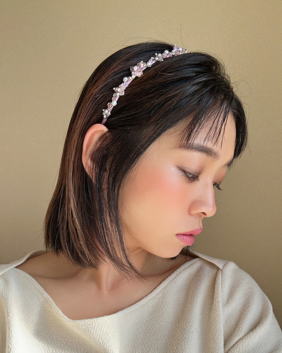 ビジューで作ったフラワーモチーフで透明感ある甘さを演出します。