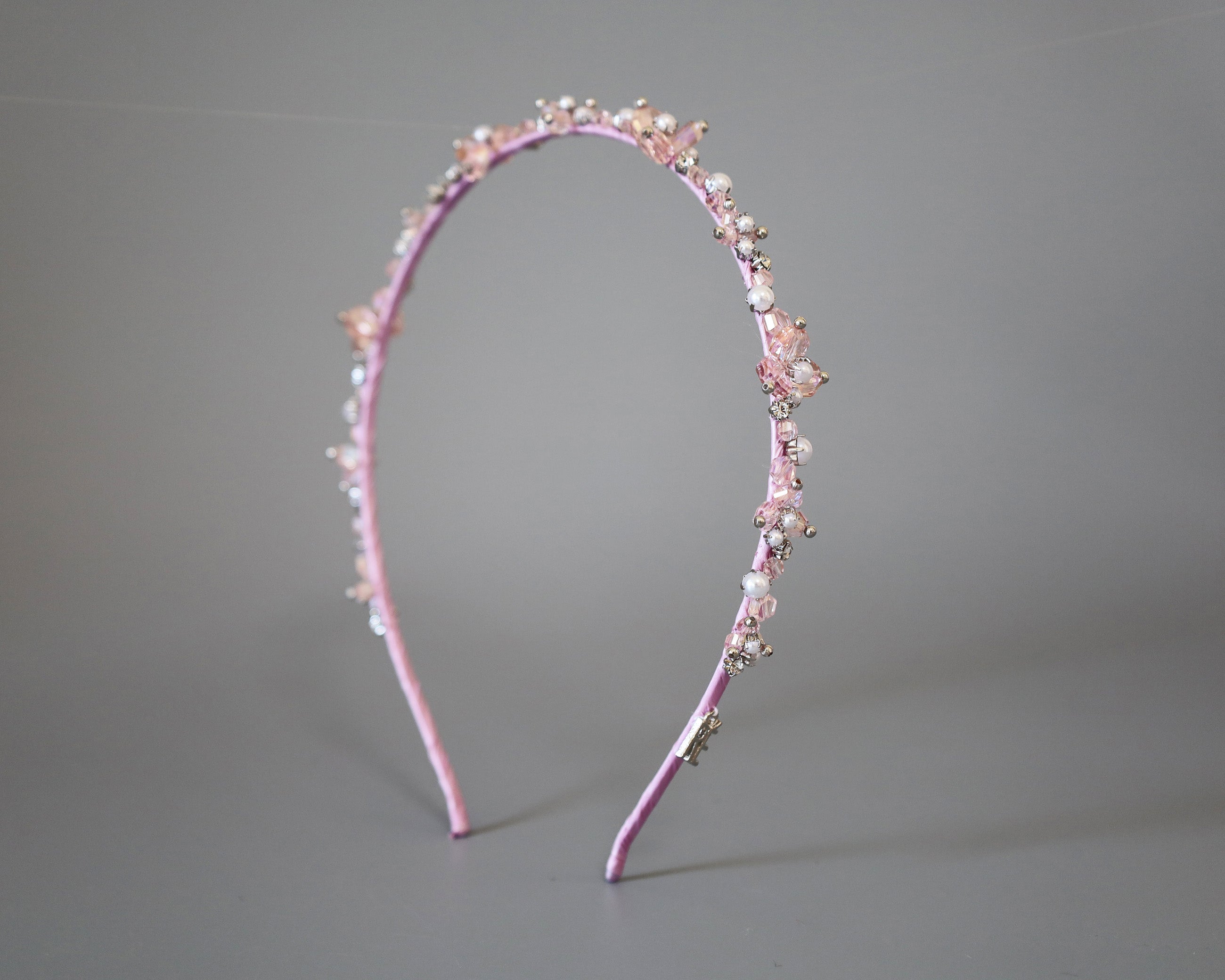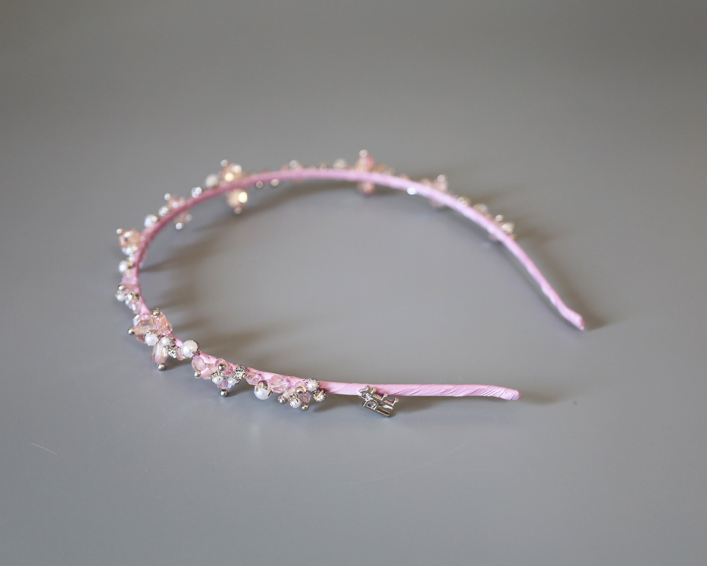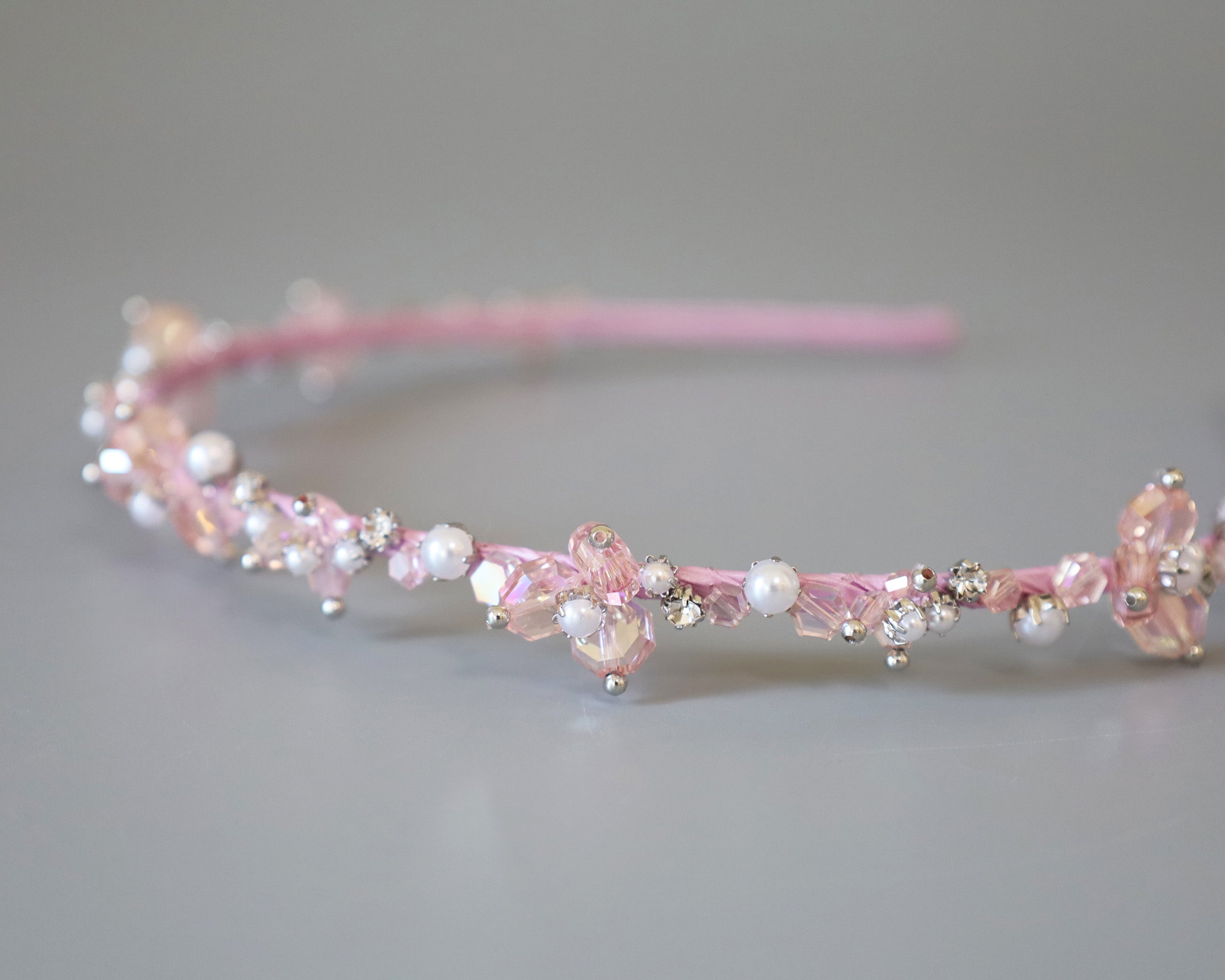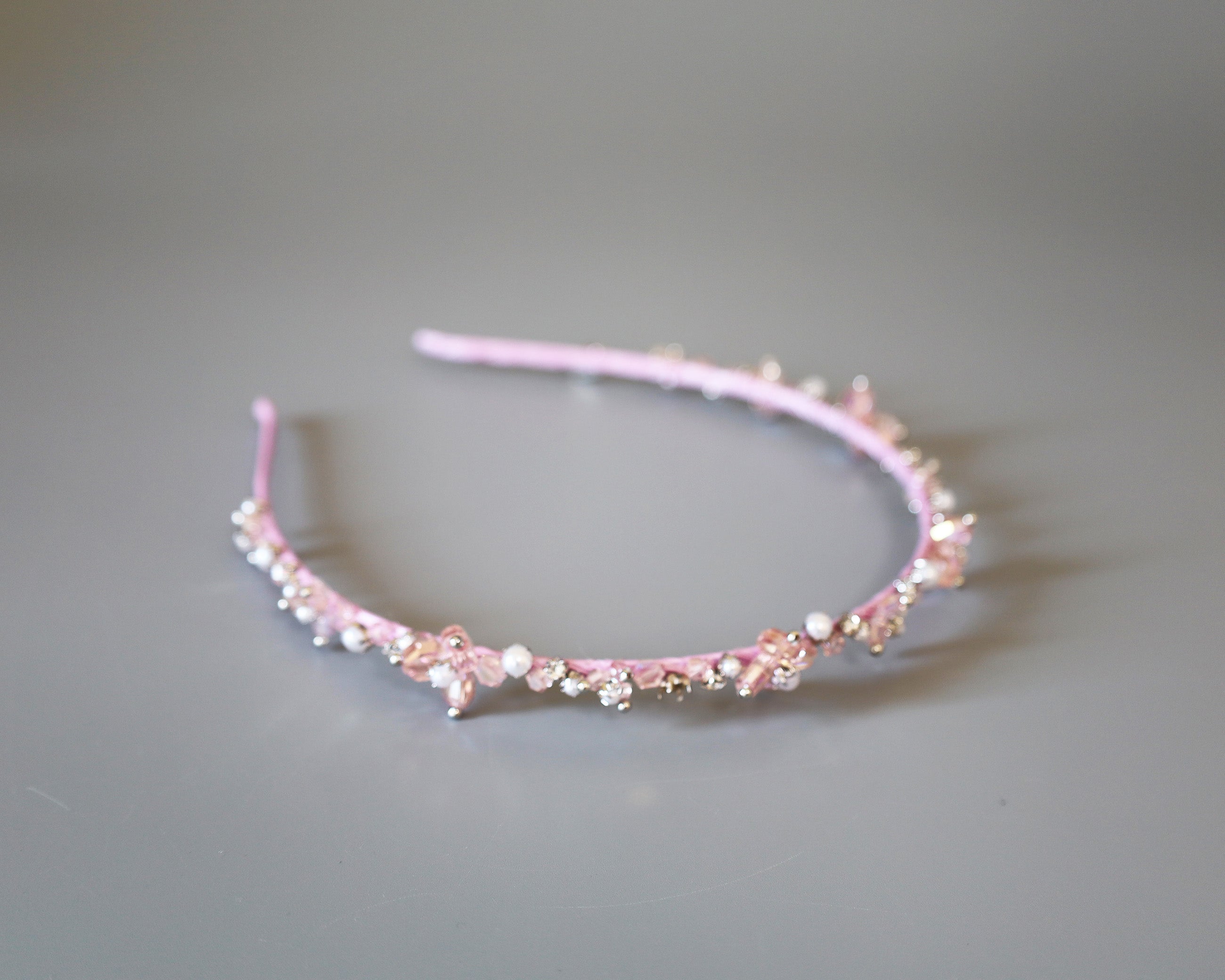 ビジューで作ったフラワーモチーフで透明感ある甘さを演出します。