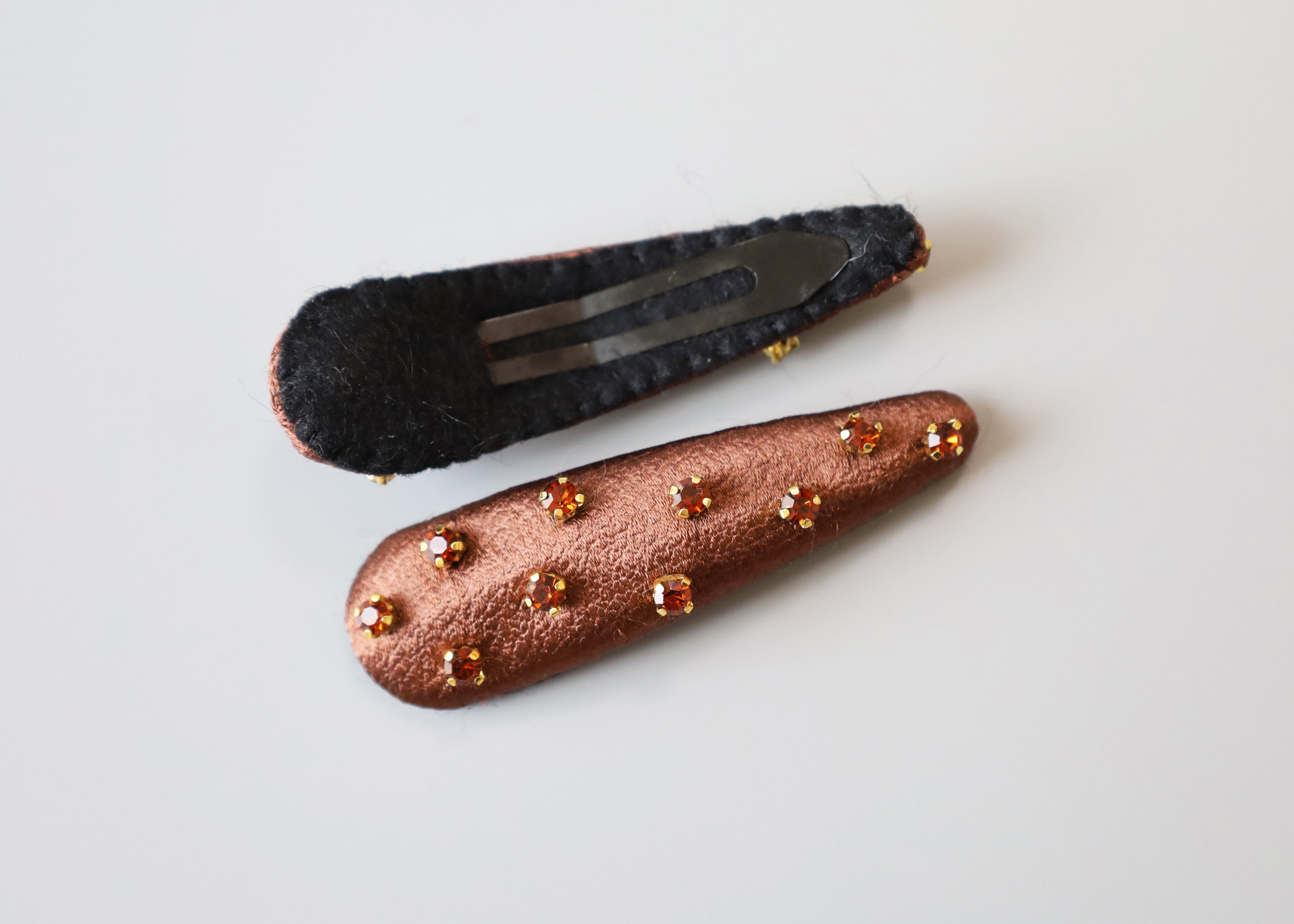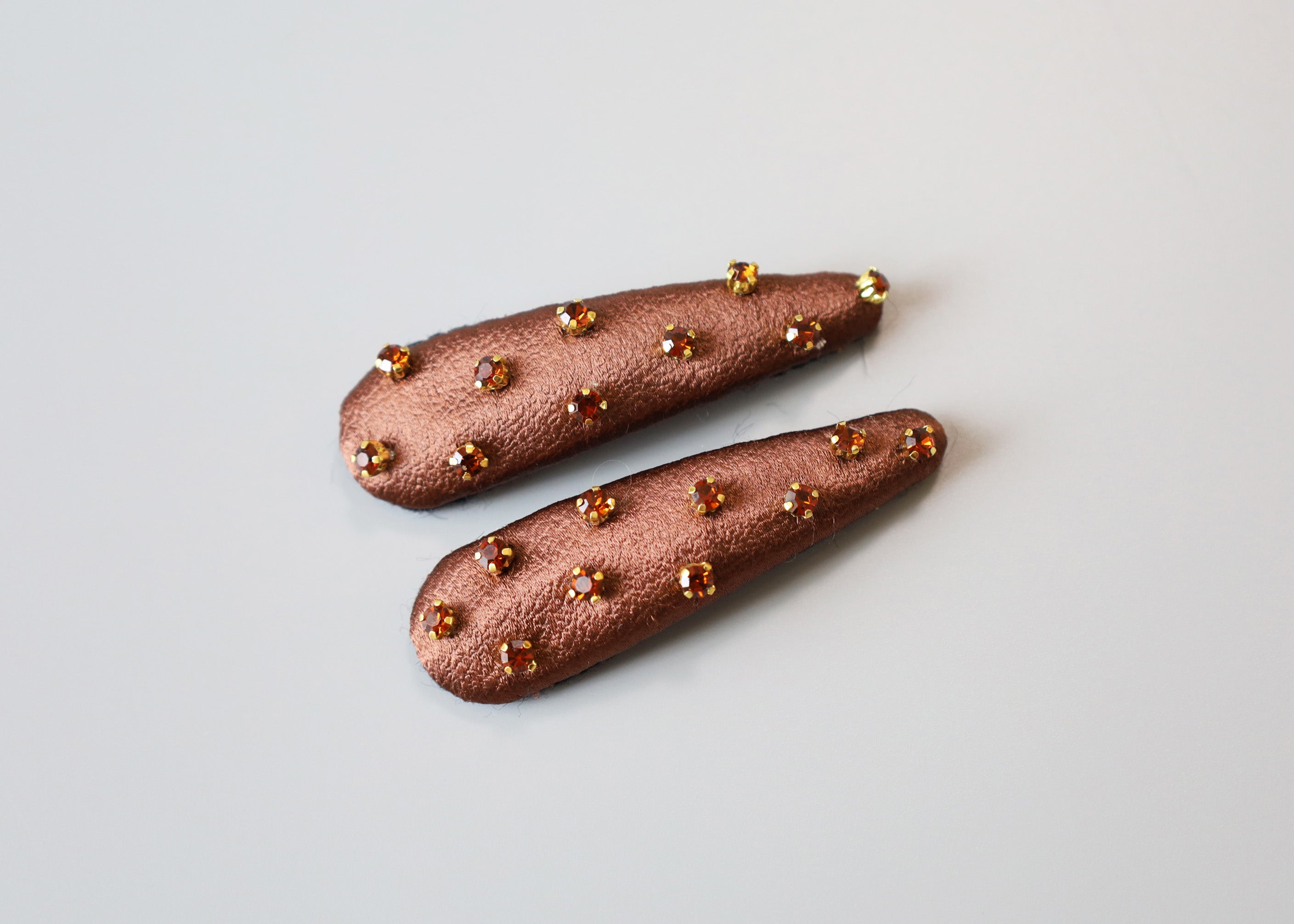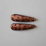 控えめな光沢感が上品なブラウンカラーのヘアピン。