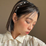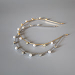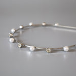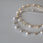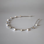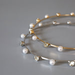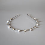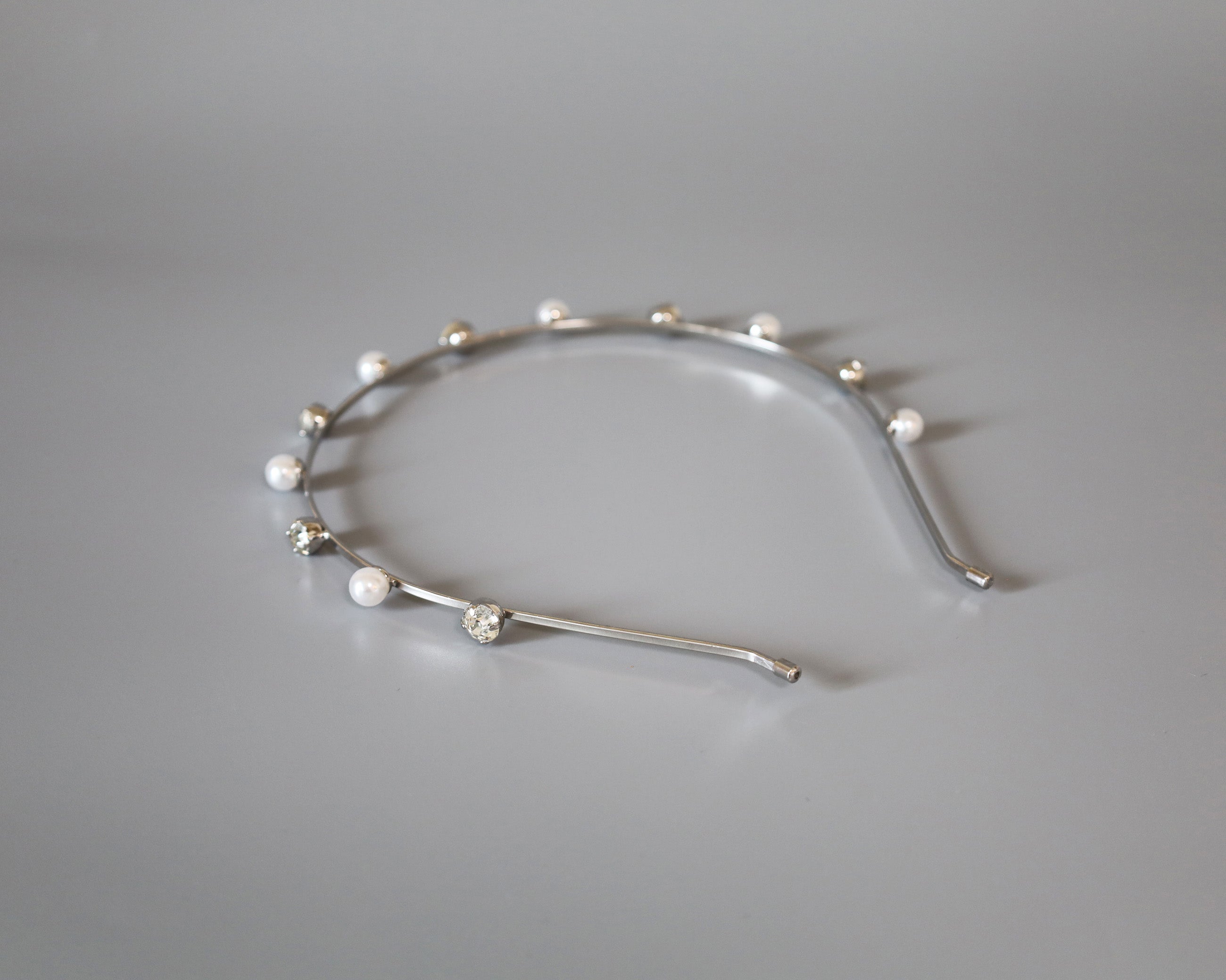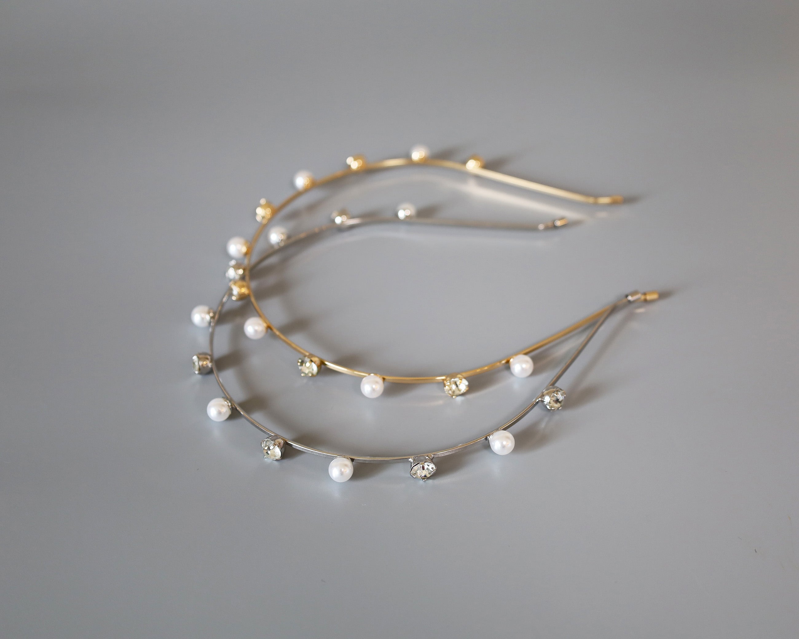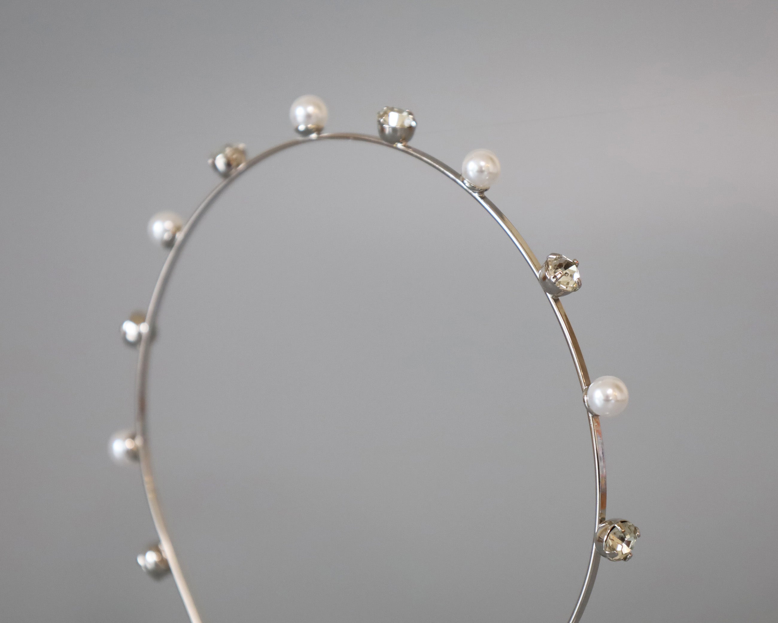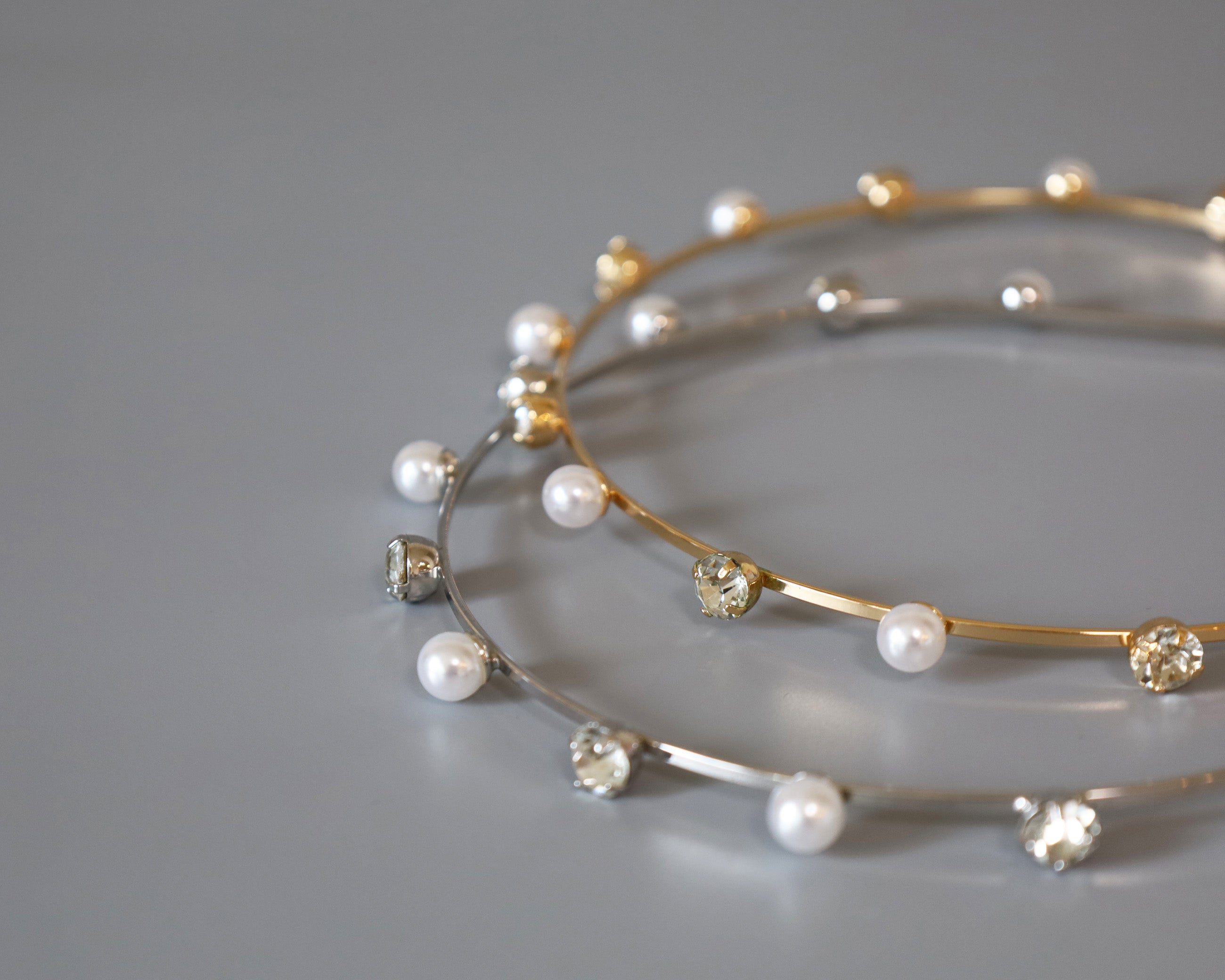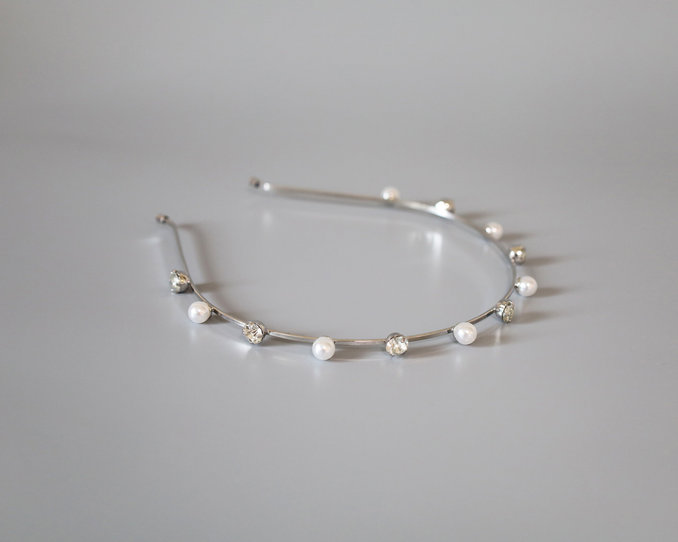 大粒のビジューとパールを交互に配置したスレンダータイプのカチューシャ。