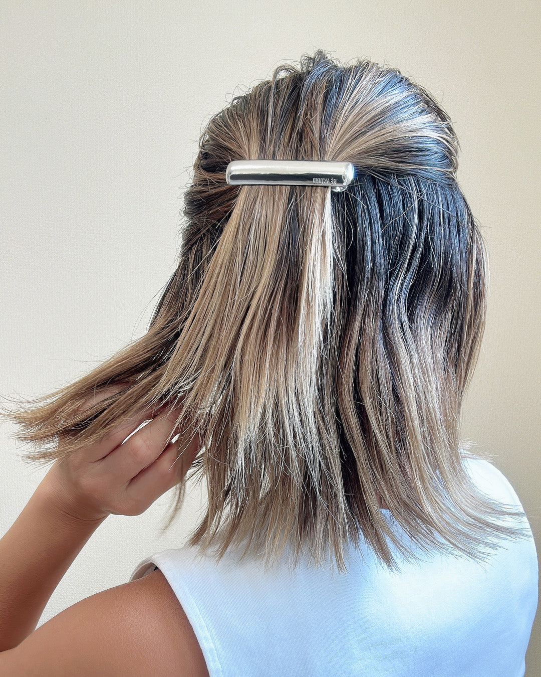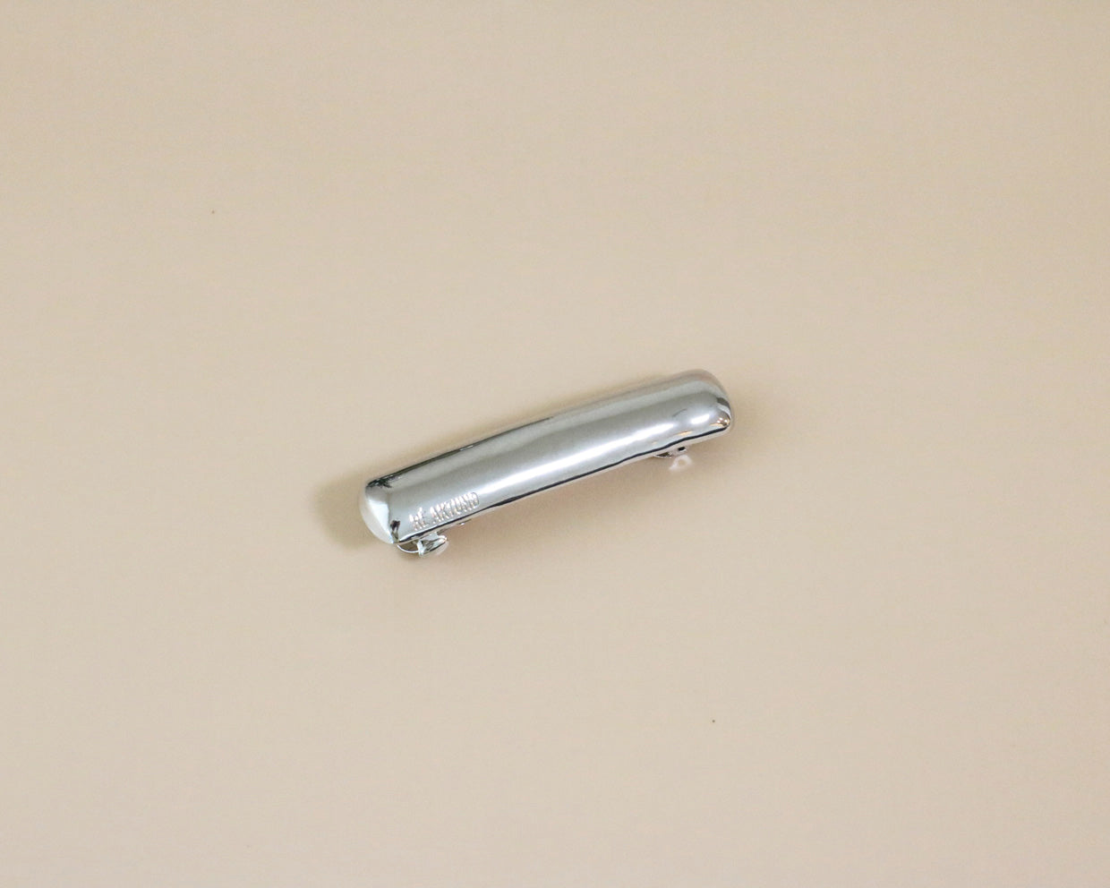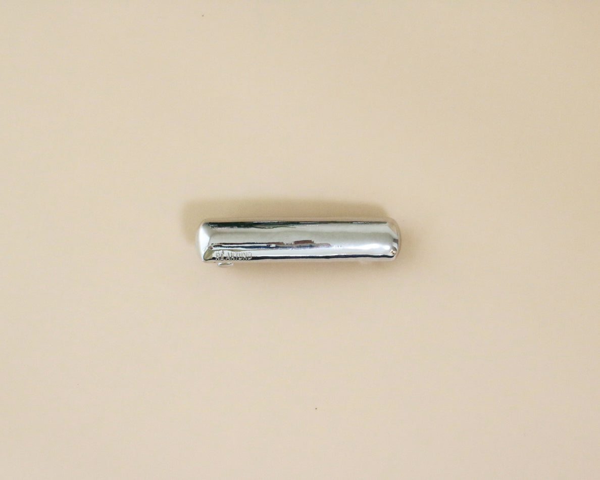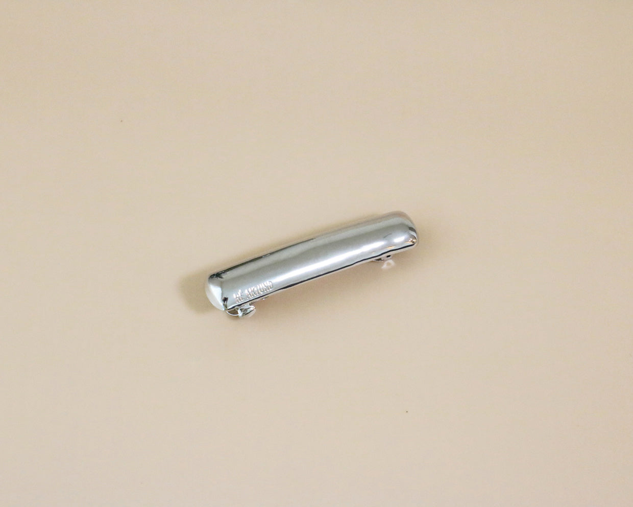 The brand name is engraved on the bottom of the barrette, giving it a simple yet sophisticated look.
