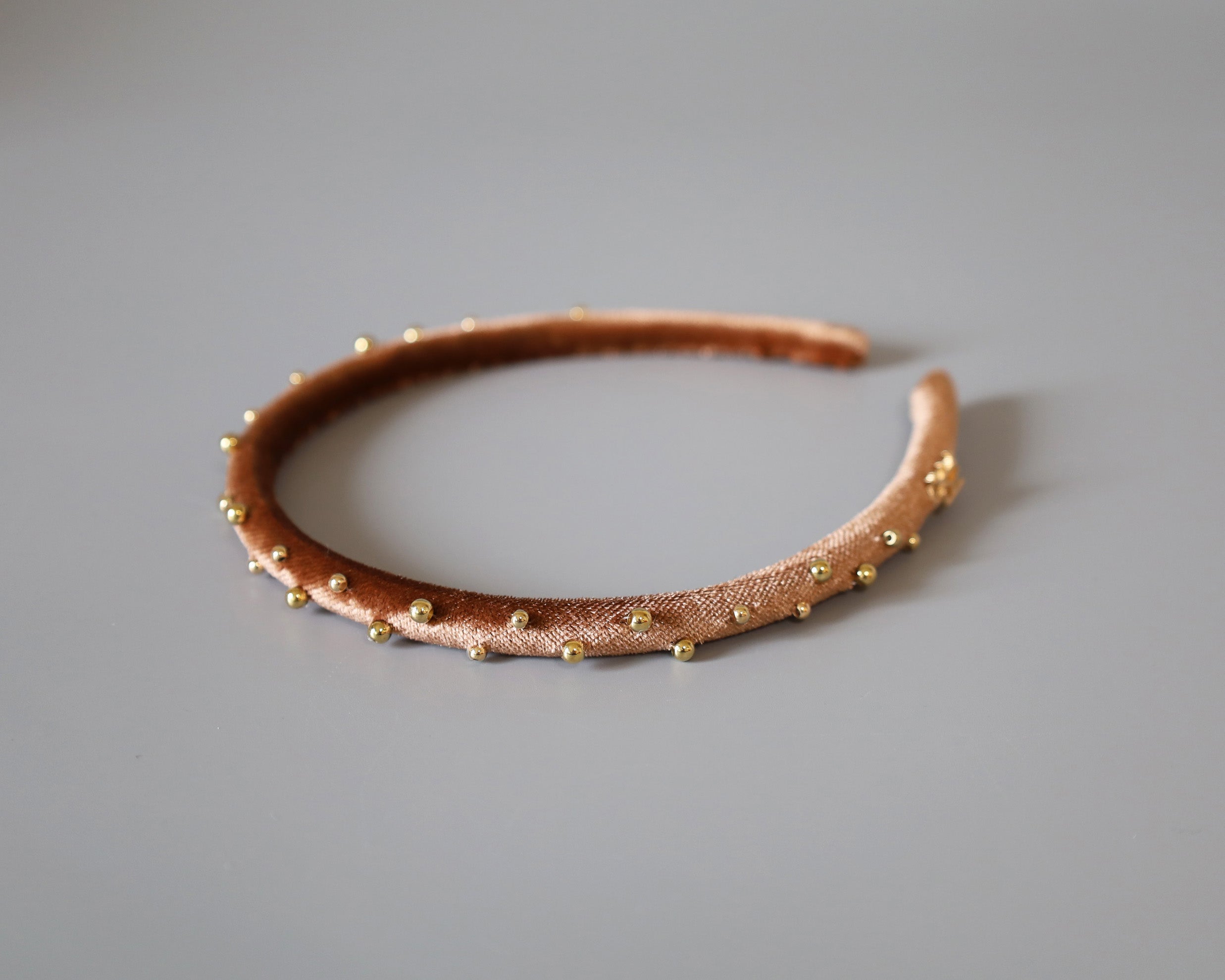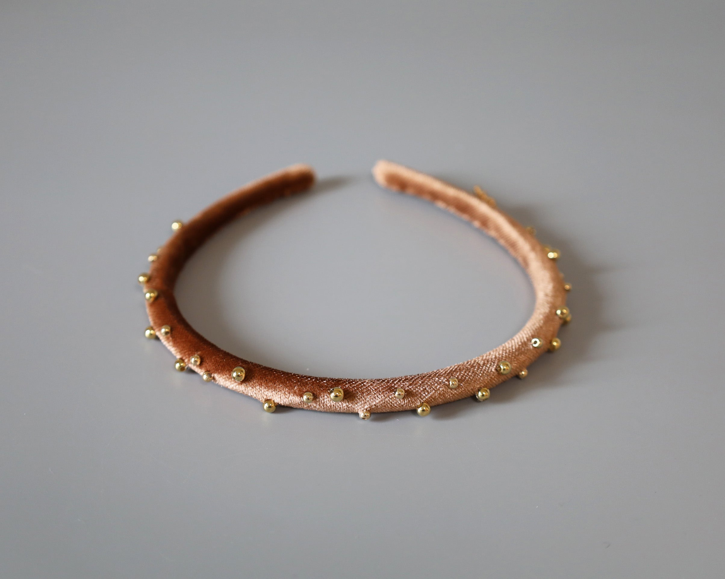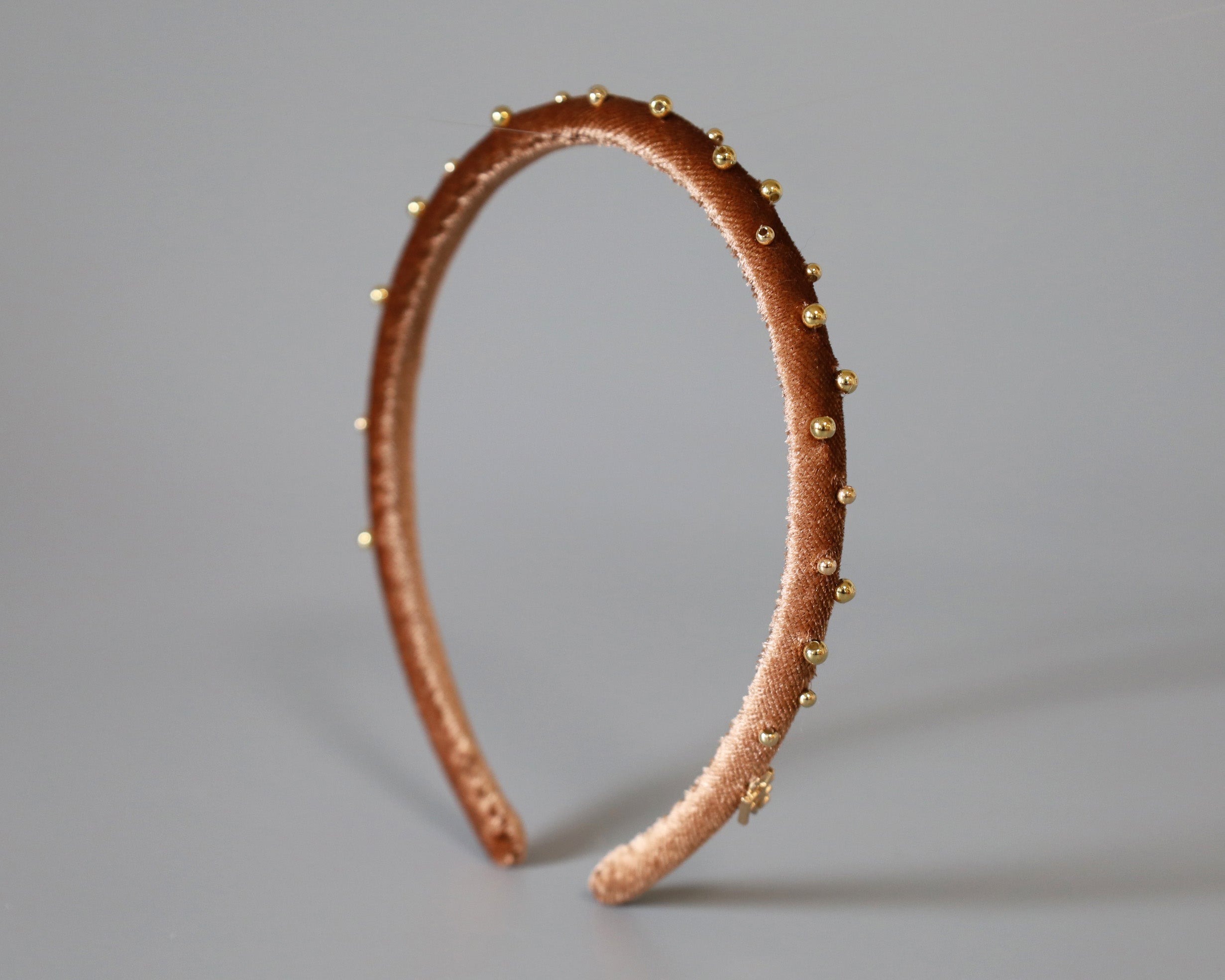 Tight Headband Velour Brown Gold Studs