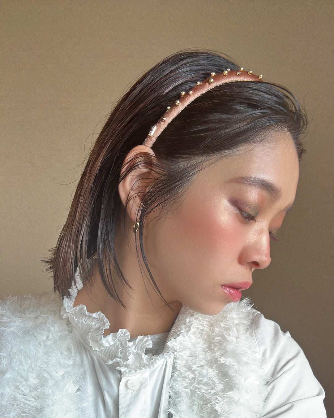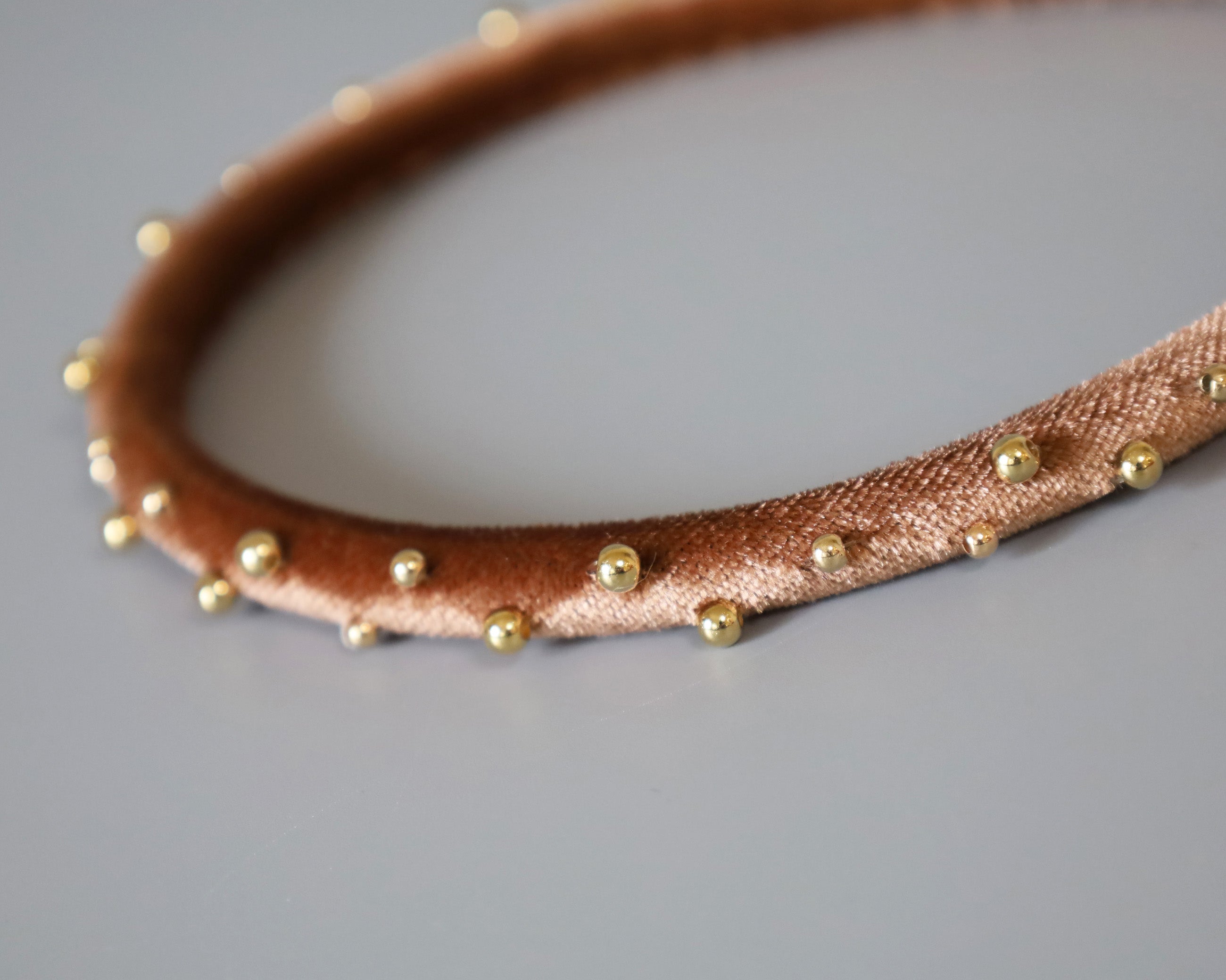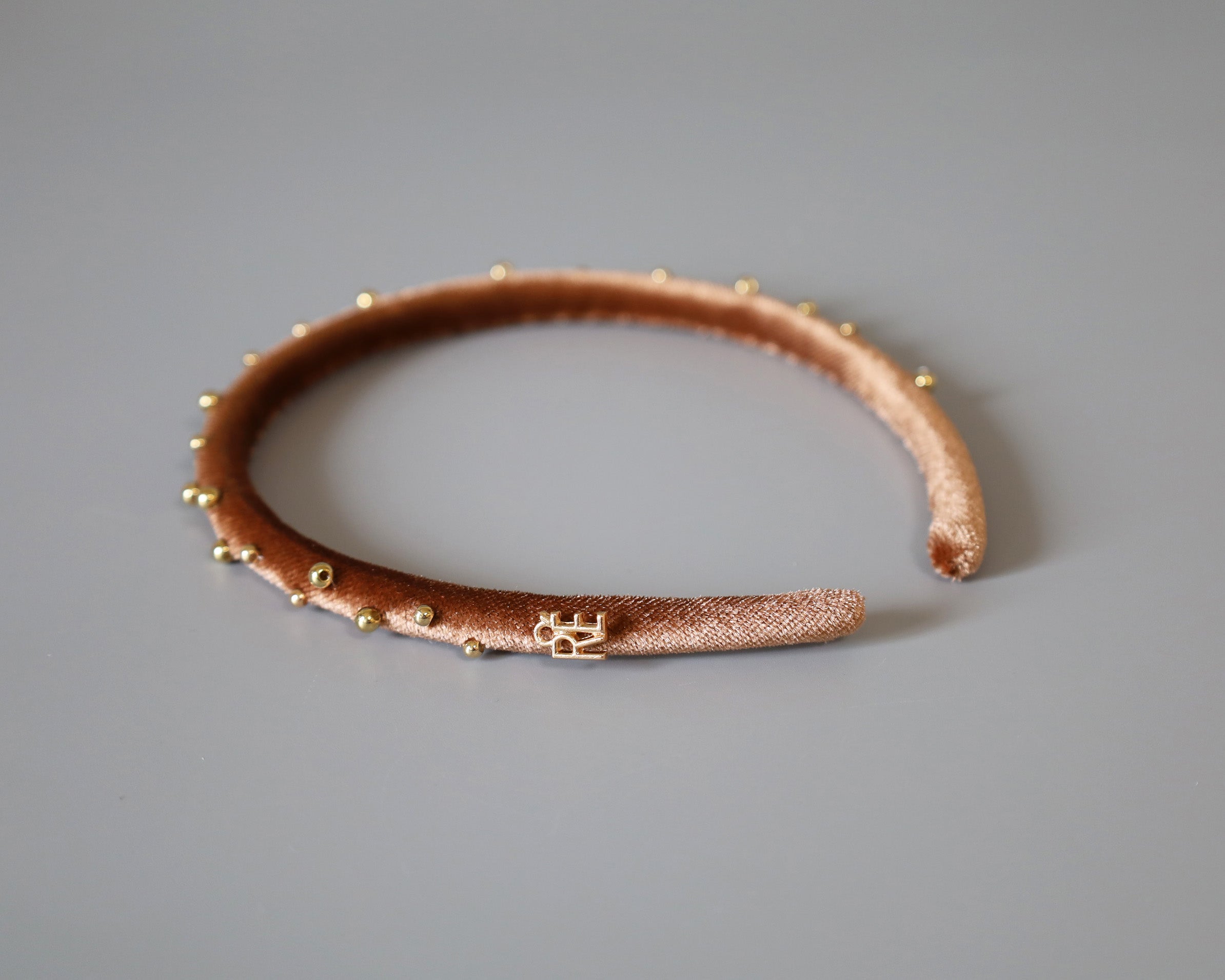 Tight Headband Velour Brown Gold Studs