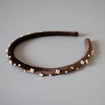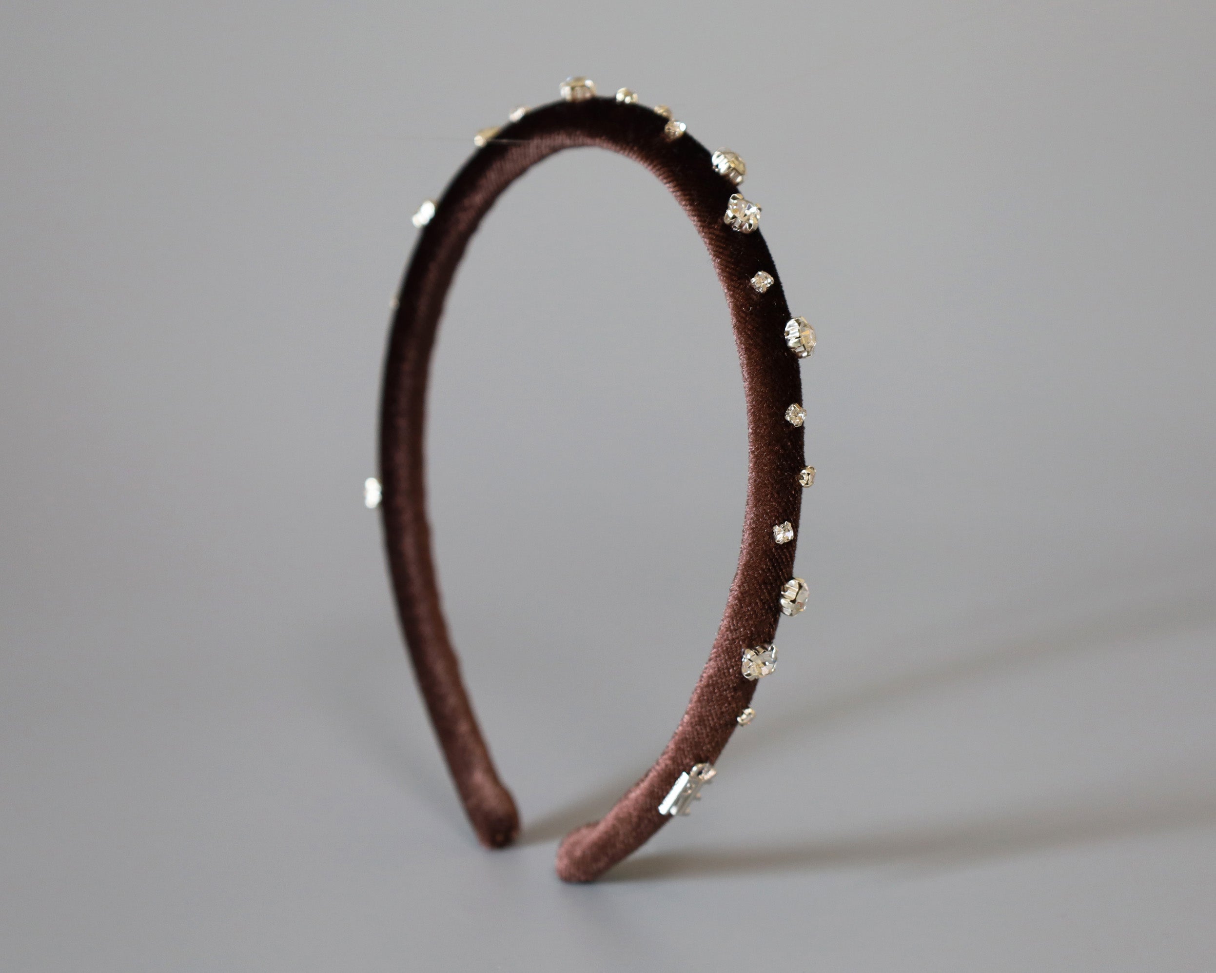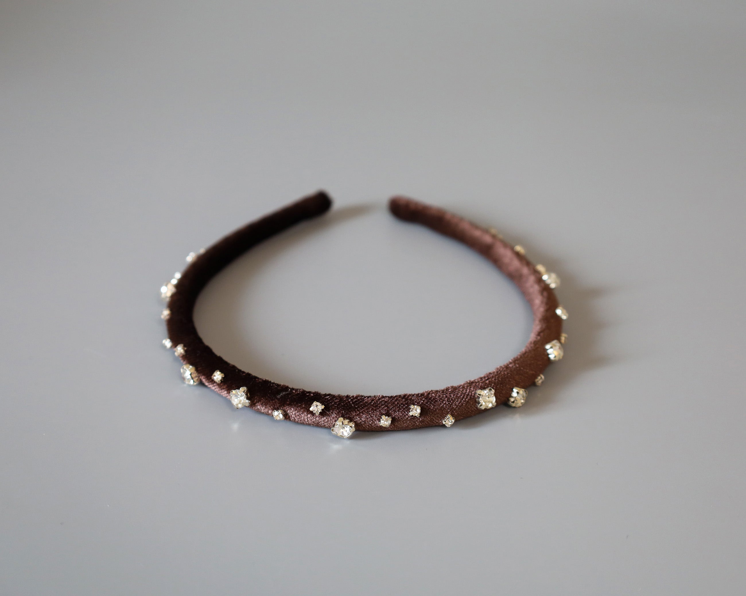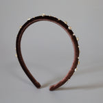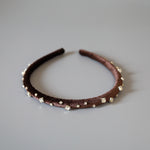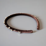 濃密なチョコレートブラウンが奥行きある表情を演出するベロアカチューシャ。