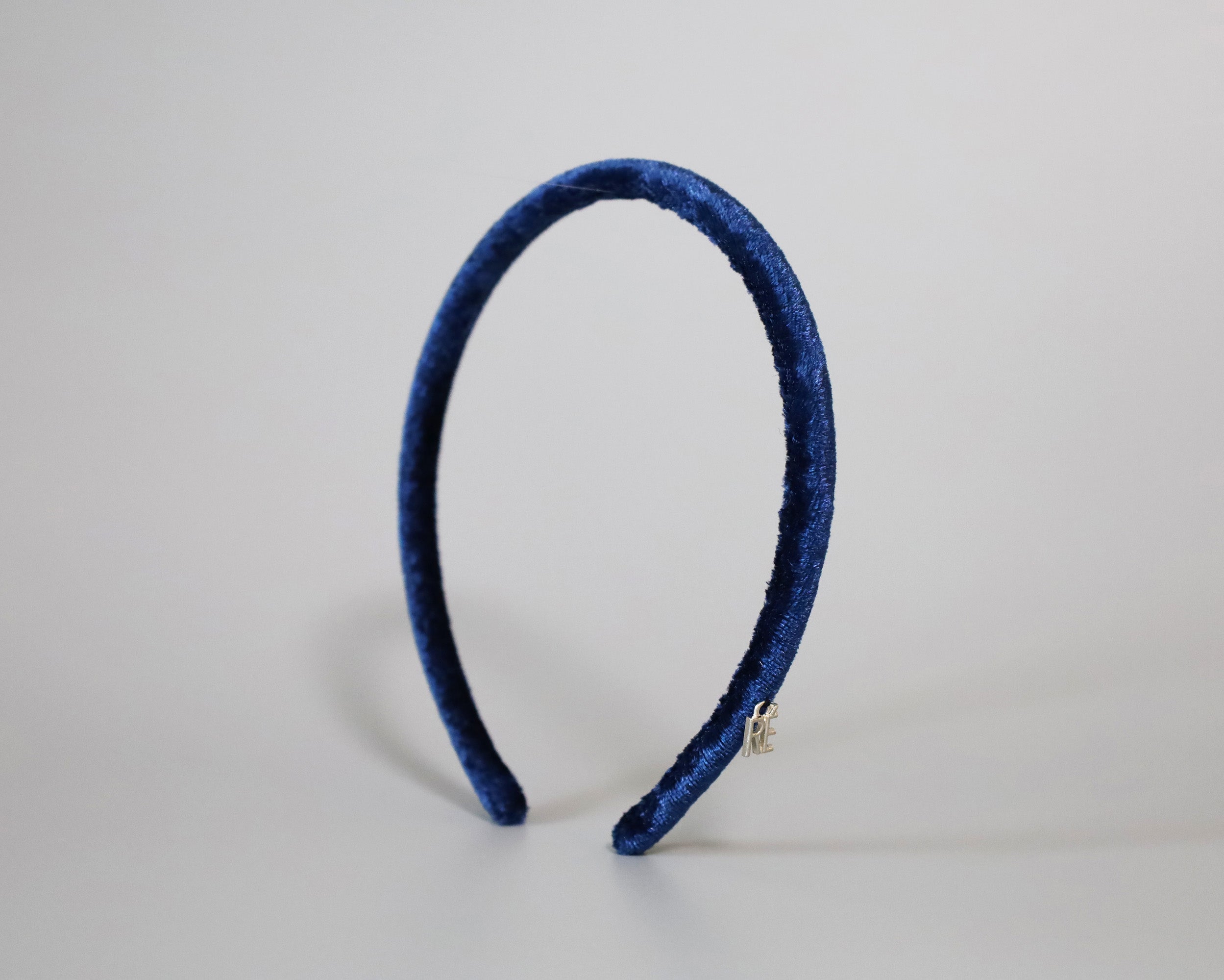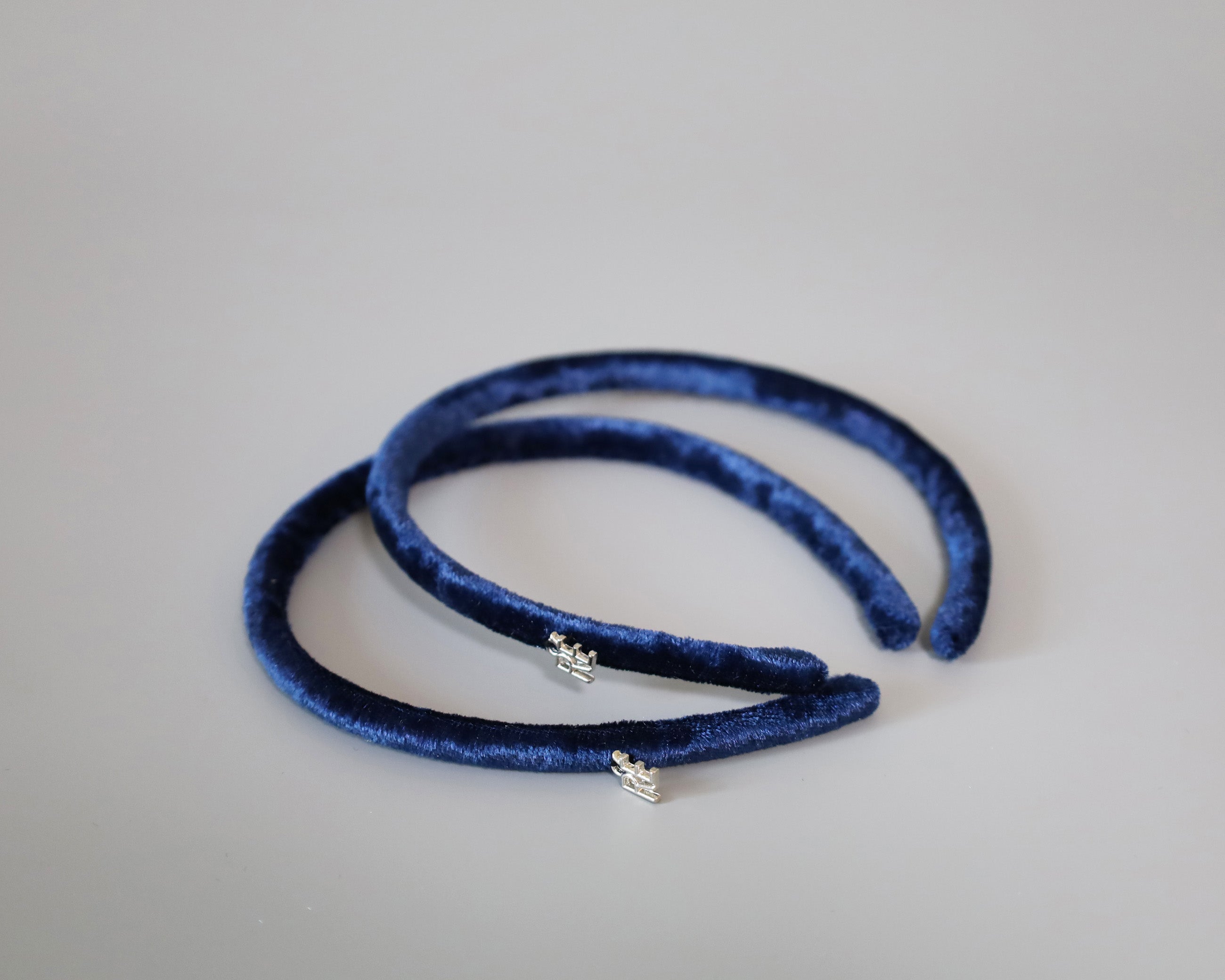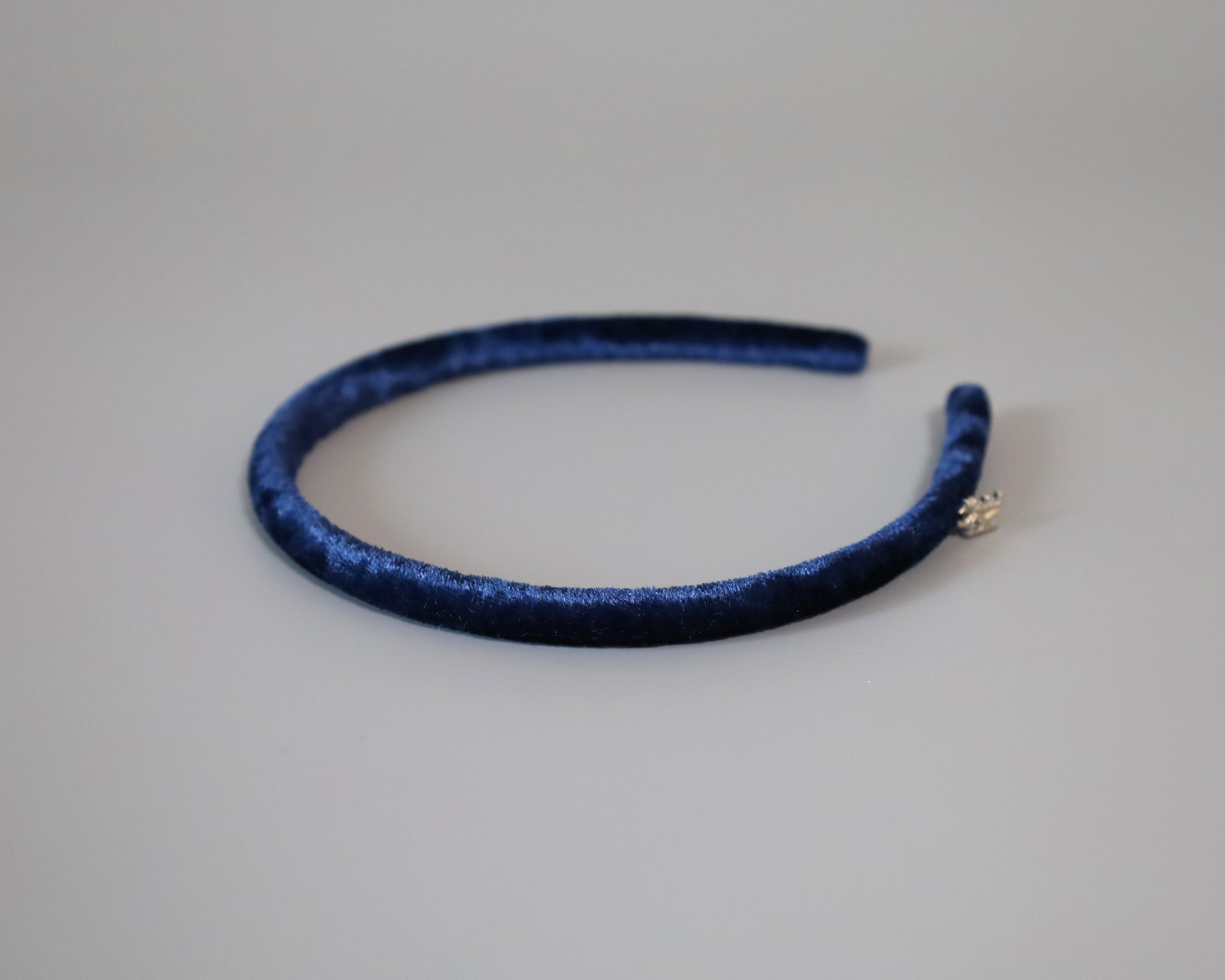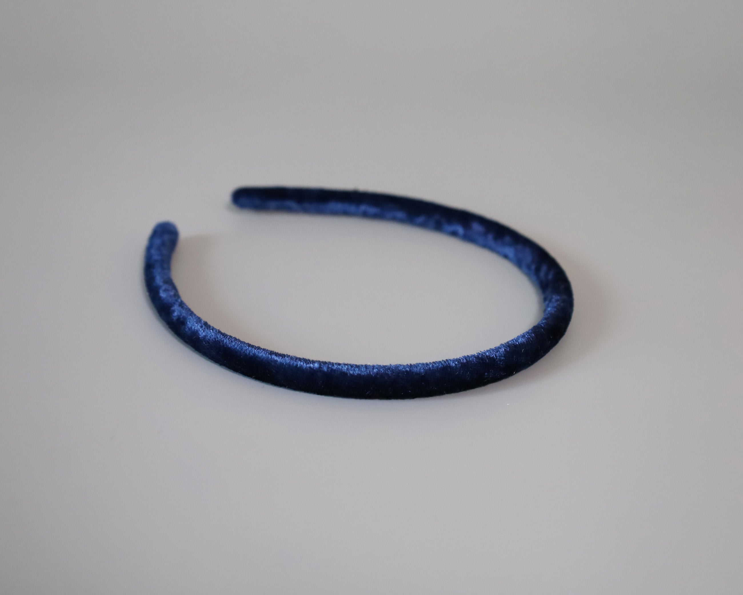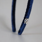 光沢感がリッチなネイビーのベロアカチューシャ。