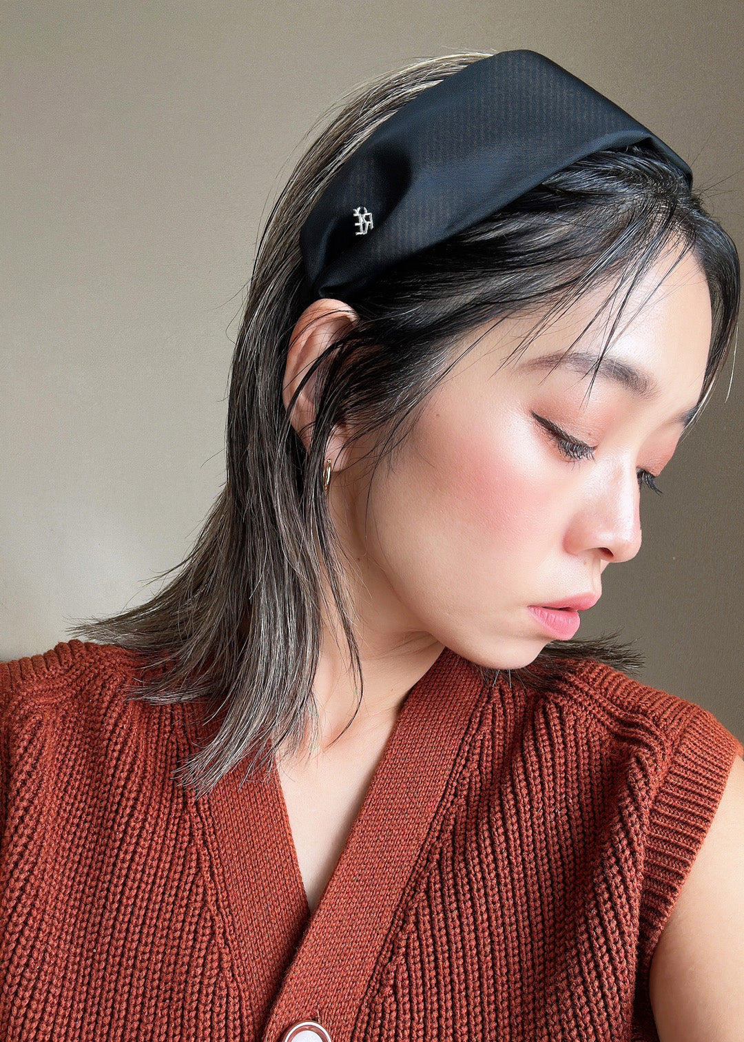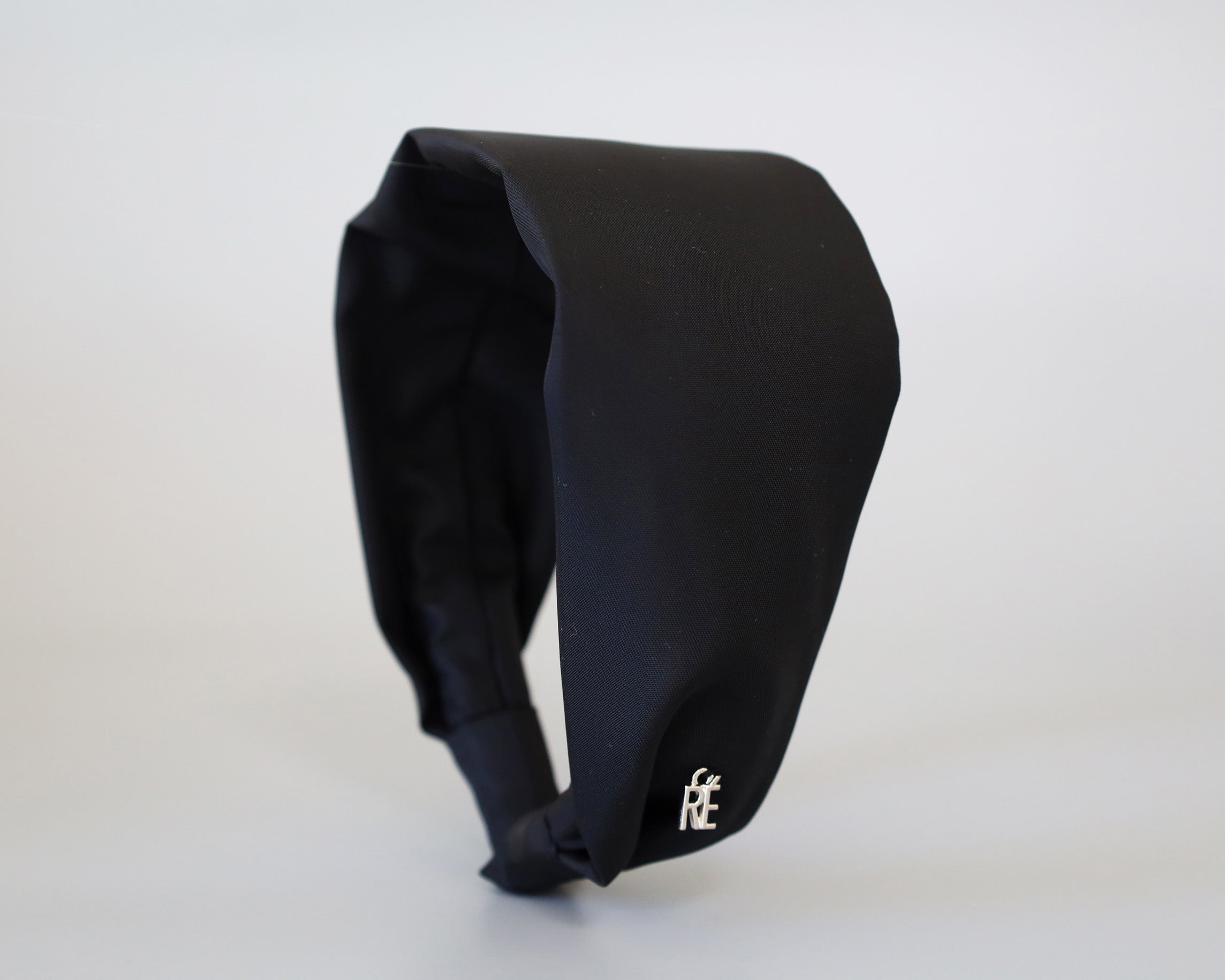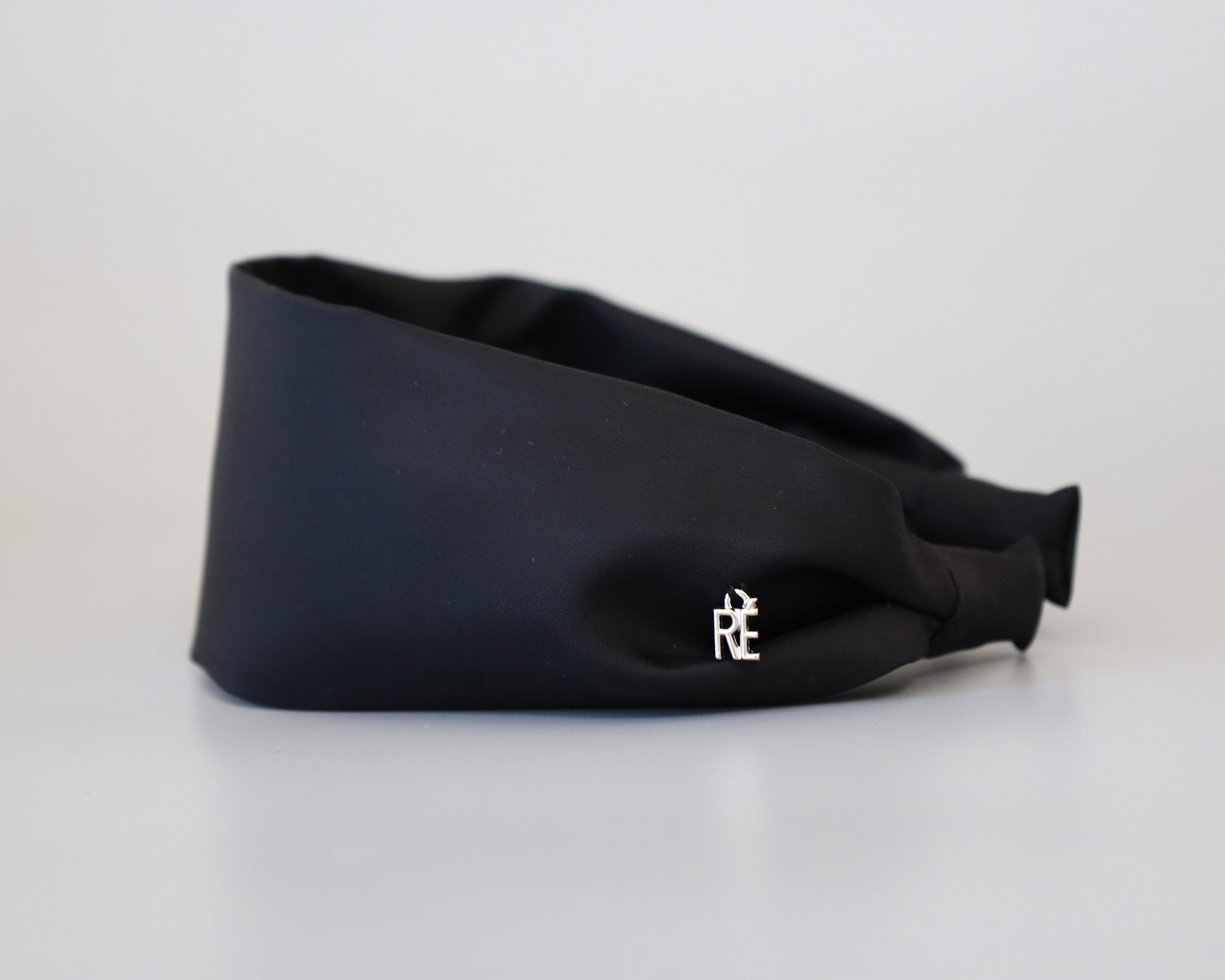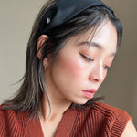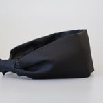 ブラックワンカラーで仕立てた、ターバン風な幅広カチューシャ。